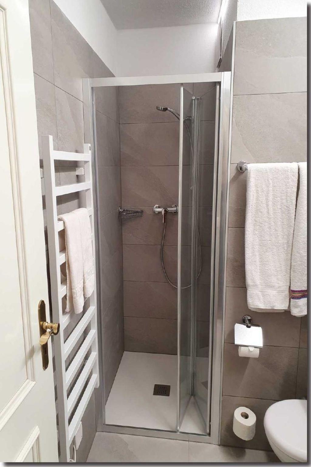 The charming flat no. 3A on the ground floor boasts a south-facing position and direct access to the communal garden. Inside, you will find an elegant living room with an open-plan kitchen that leaves nothing to be desired: Microwave oven, traditional oven, ceramic hobs, dishwasher and a large fridge with separate freezer compartment under an elegant granite top. There is a master bedroom, a children's bedroom with a double bed and an additional folding bed. Two bathrooms, equipped with built-in washbasins, toilets, a bathtub or shower tray and towel dryers, provide the necessary comfort.