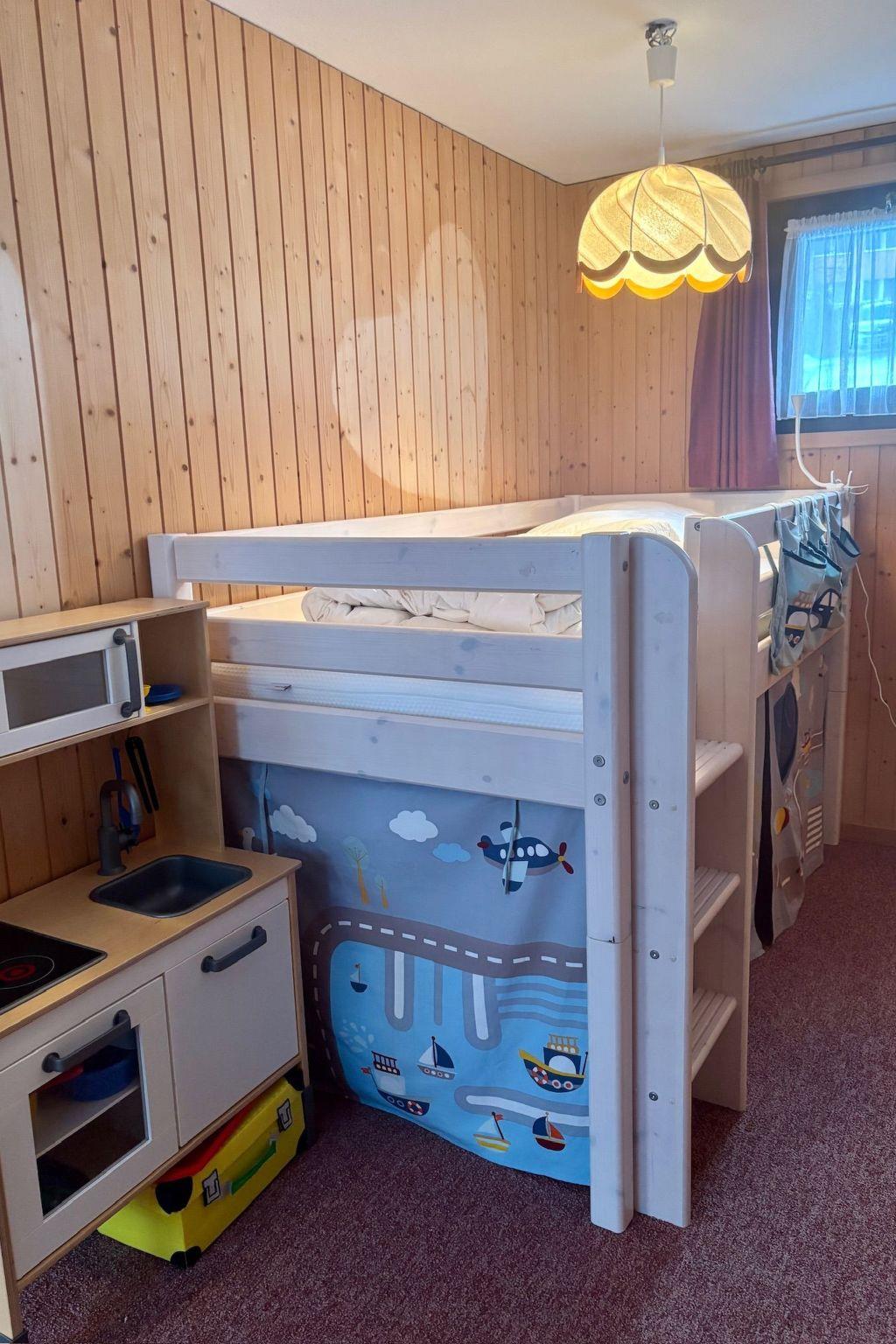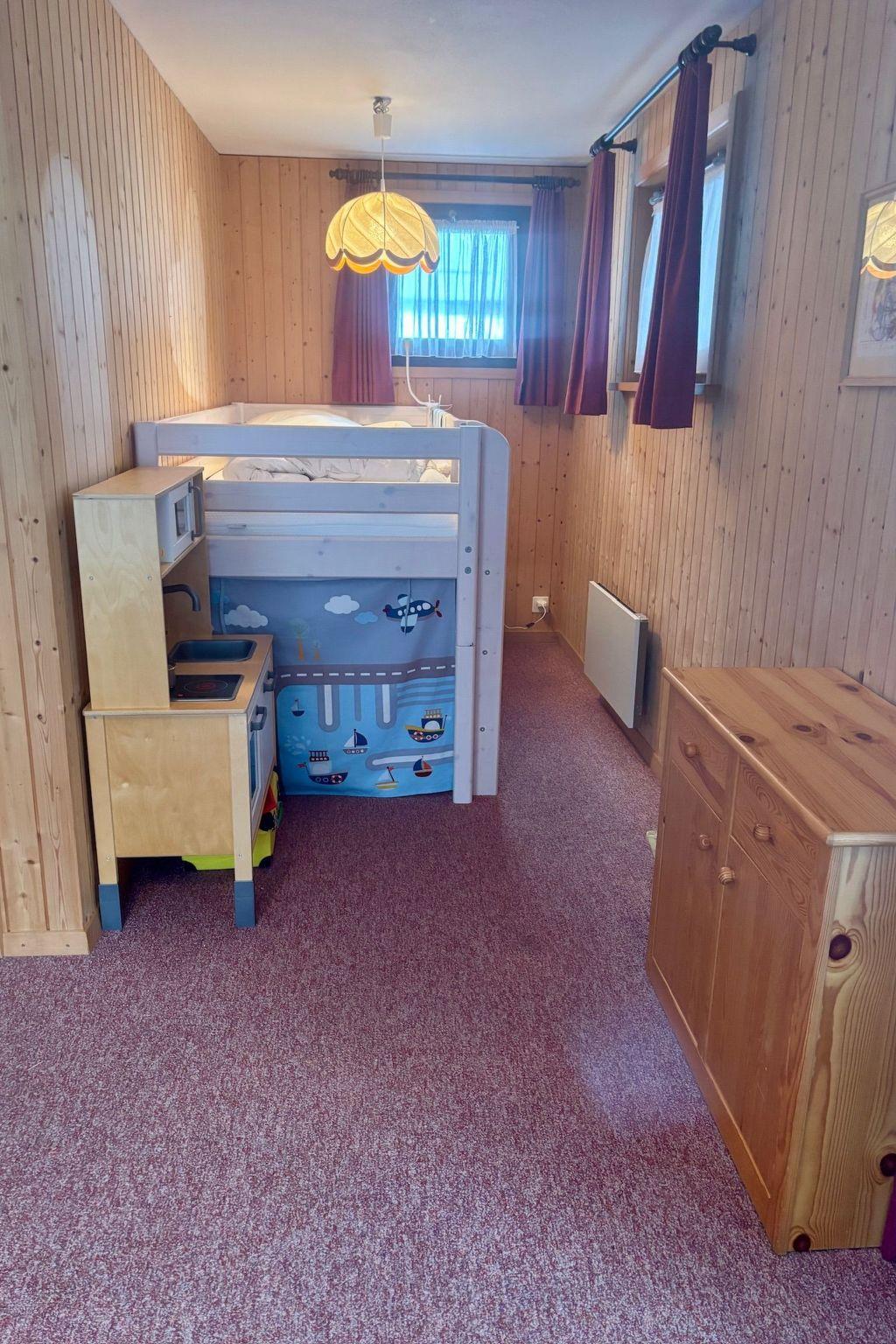 Inside, you will find a tasteful interior that emphasises comfort and cosiness. The house offers two inviting bedrooms on the first floor, one with a double bed and the other with an entertaining bunk bed including a slide - ideal for children. The living and dining room invites you to spend cosy evenings with a convection fireplace, while you can use the modern kitchen with ceramic hob, fridge and dishwasher to prepare delicious meals. A studio in the basement with two further beds, accessible via an external staircase, offers additional privacy and is also equipped with a wet room.