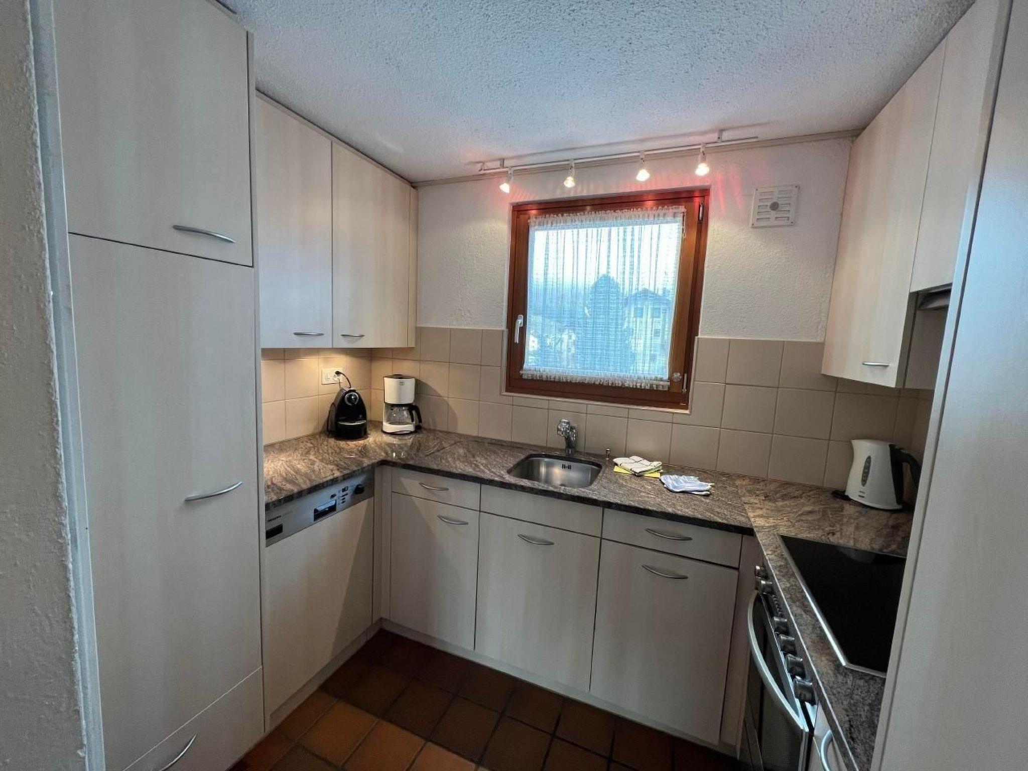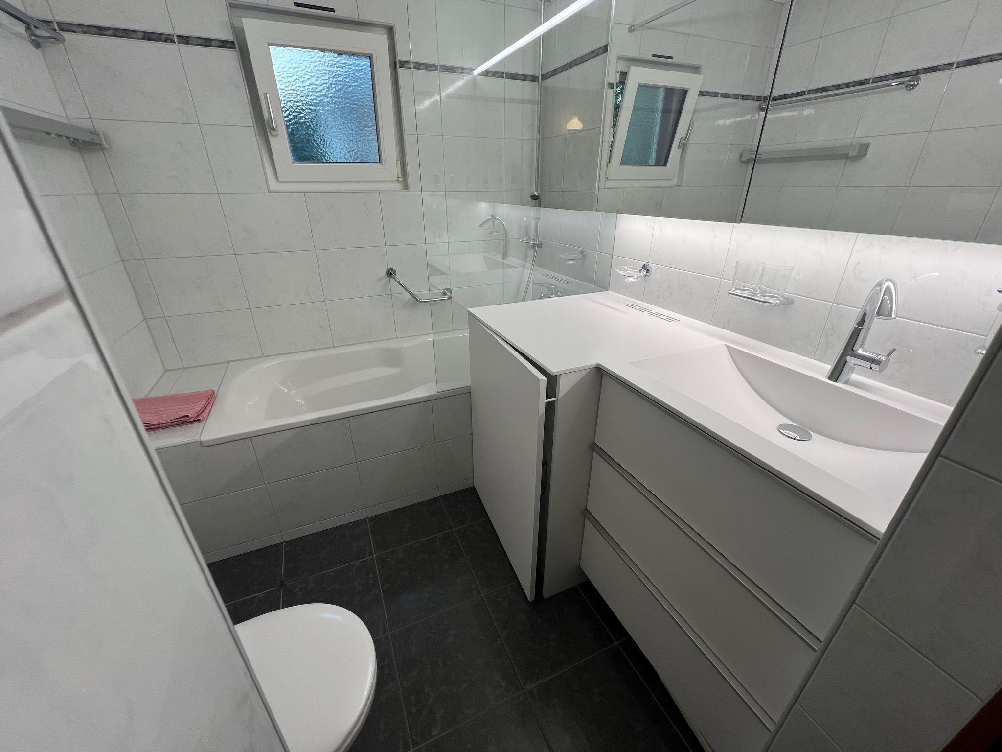 The flat impresses with its well thought-out interior, which leaves nothing to be desired. A spacious living/dining room with access to the balcony, two bedrooms with double beds, one bedroom with two single beds and two bathrooms, one with a shower and one with a bathtub, offer plenty of space and comfort. Entertainment is provided by an HD TV and free Wi-Fi access. A fully equipped kitchen with ceramic hob, Nespresso coffee machine and fondue set makes self-catering easy. A washing machine and tumble dryer are available for your exclusive use.