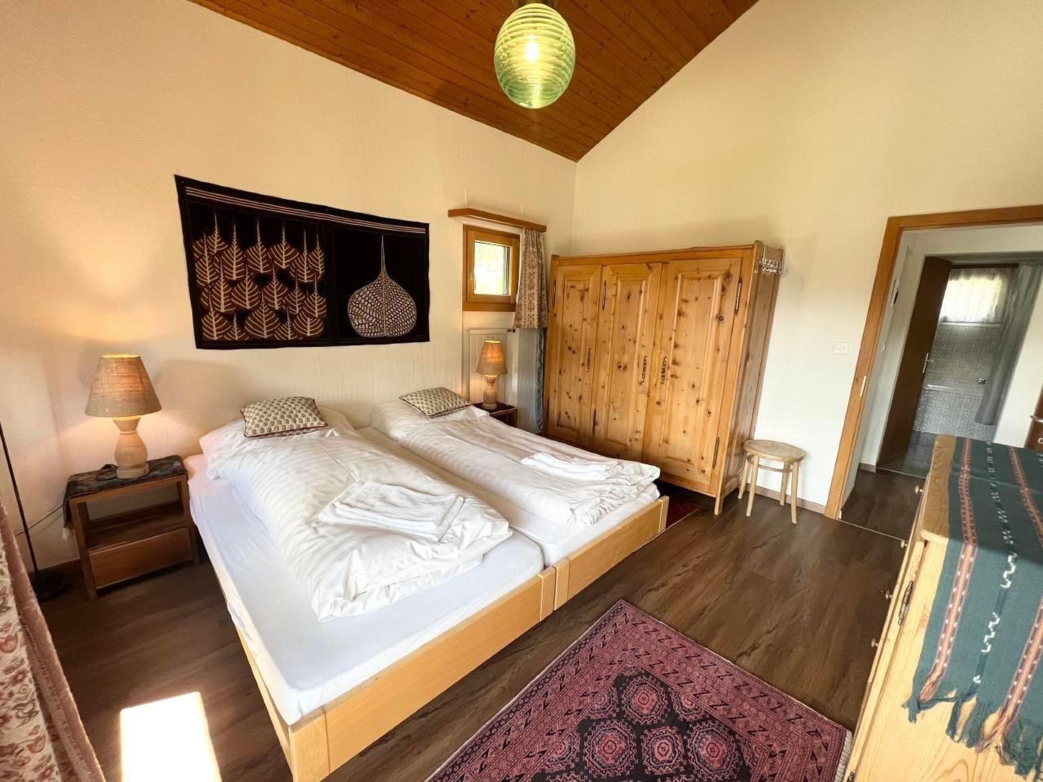 **Interior:** The flat is child-friendly and has an inviting living/dining room with access to the balcony and two bedrooms - one with a double bed and the other with two single beds. The modern and well-equipped kitchen has everything you need to prepare delicious meals, including a kettle and Nespresso machine. The bathroom is equipped with a bathtub. There is also a communal washing machine, a ski room and a waxing room.