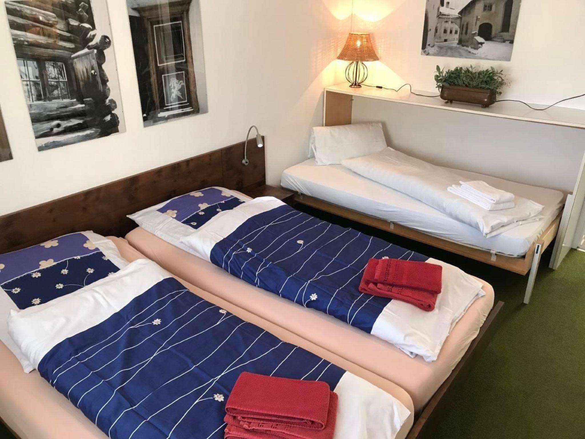 Inside, the flat offers everything you need for a carefree stay. The centrepiece is the bright living/dining room, which leads directly onto the balcony from where you can enjoy the impressive mountain scenery. A bedroom with a double bed and another with two single beds promise peaceful nights. The well-equipped kitchen invites you to cook together, while the bathroom with bathtub ensures relaxing moments. Additional comfort is provided by amenities such as free Wi-Fi, a communal washing machine and a ski room and waxing room.