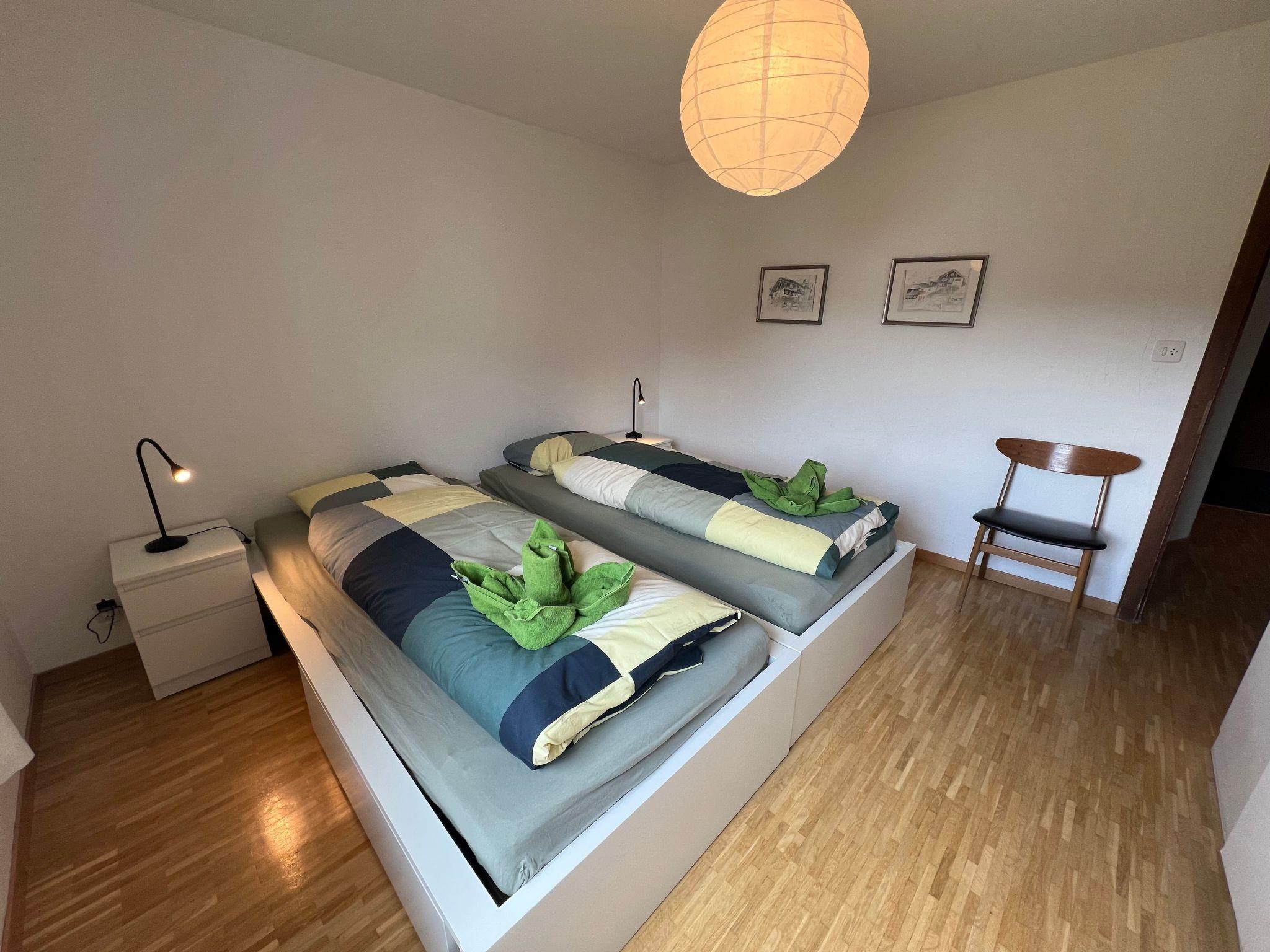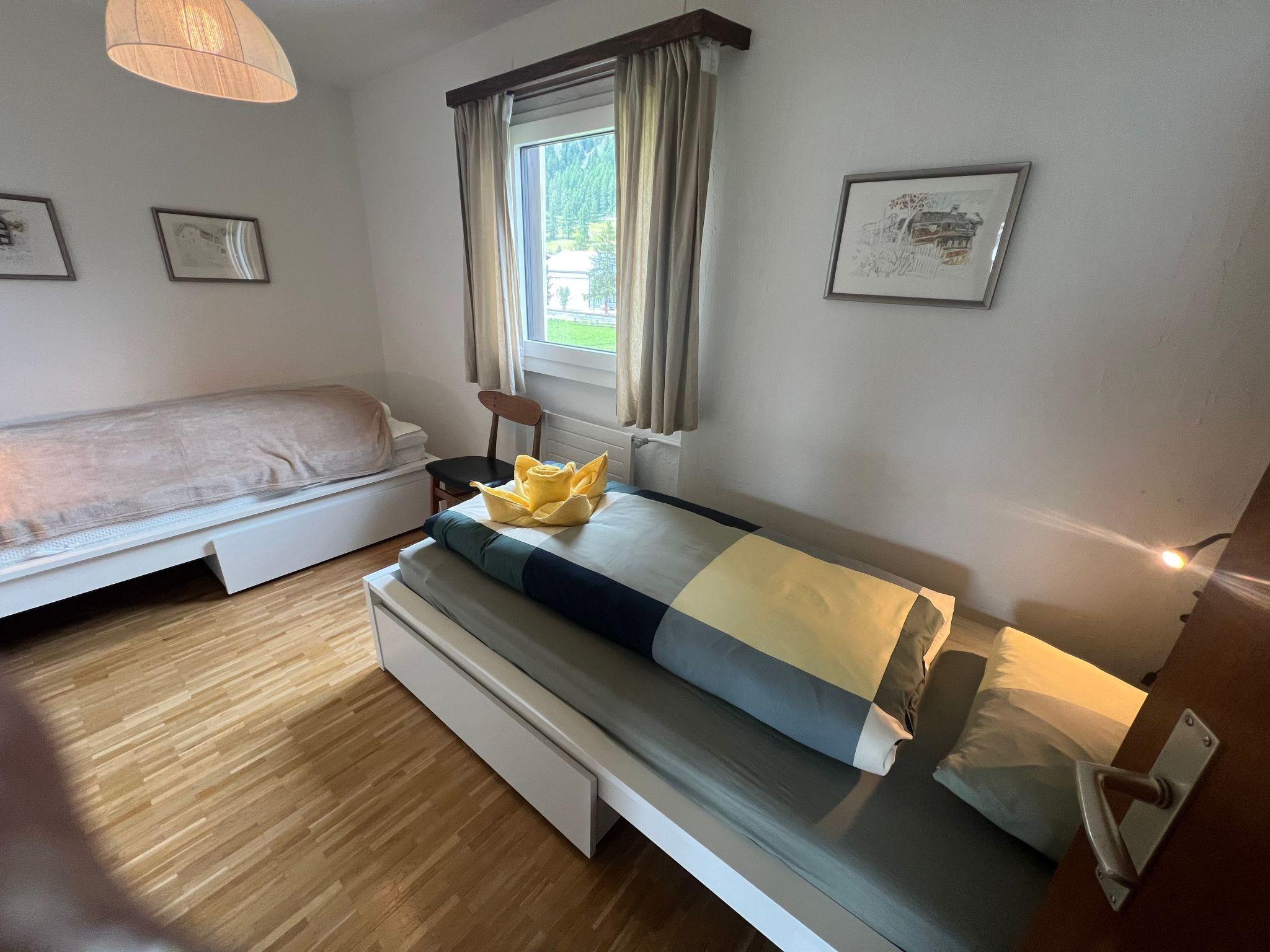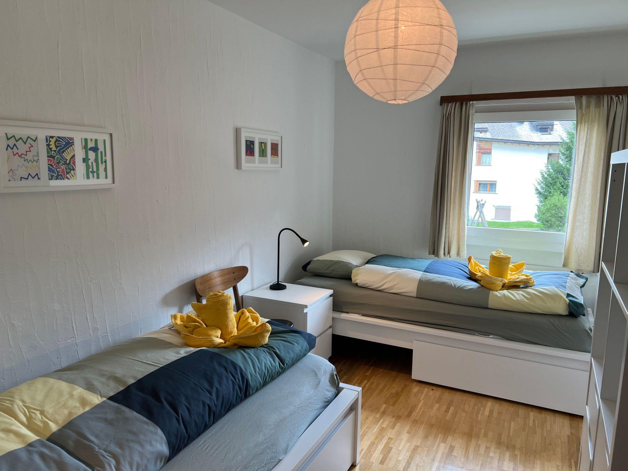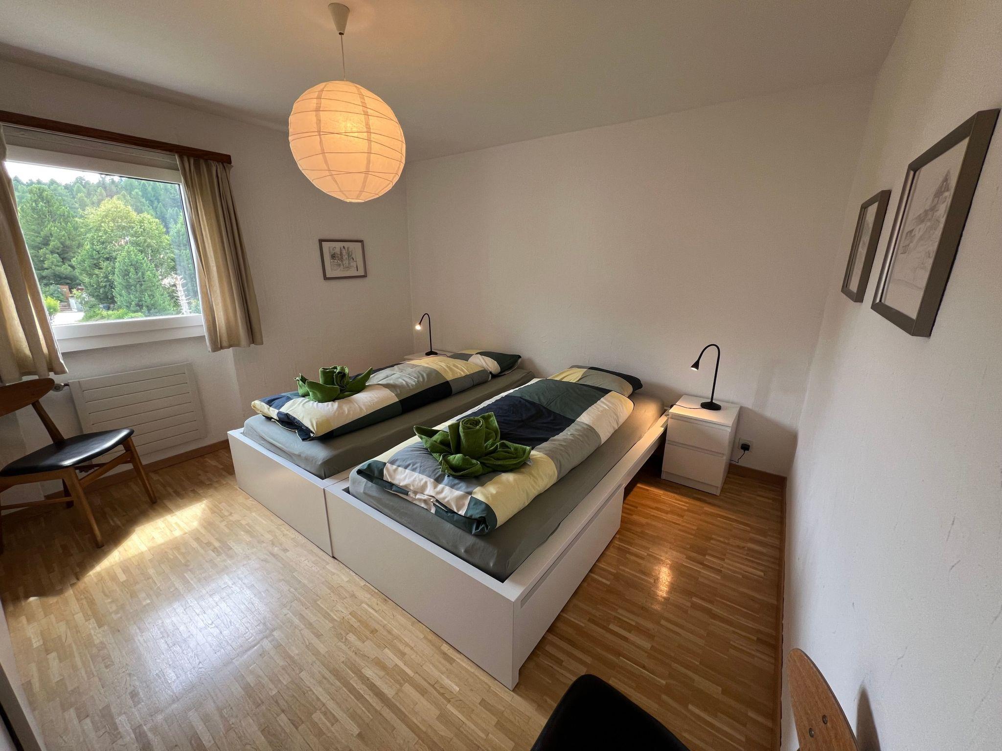 The flat has an inviting living/dining room with balcony, a bedroom with a double bed and two further bedrooms, each with two single beds. A well-equipped kitchen with coffee machine, fondue and raclette set and kettle is provided for your convenience. A bathroom with bathtub and another bathroom with shower provide the necessary comfort. Free Wi-Fi access and the use of a communal washing machine, ski room and waxing room in the house round off the offer.