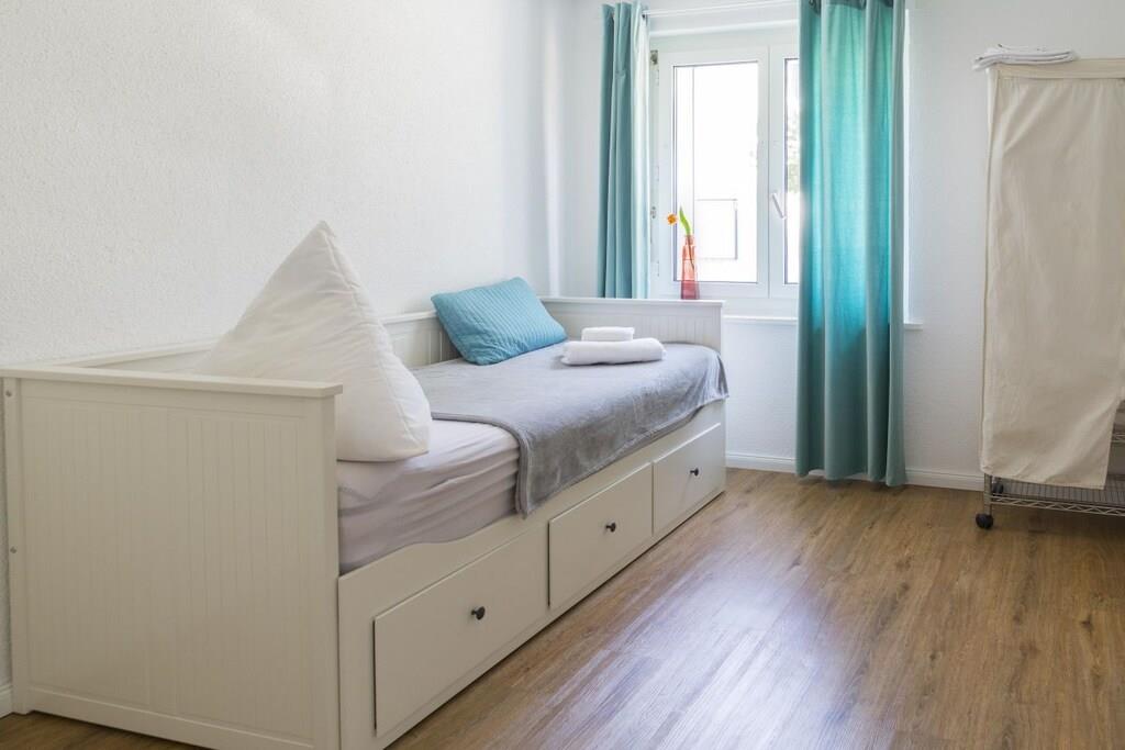 Lägenheten ligger på den upphöjda bottenvåningen i ett flerfamiljshus och har en boyta på 90 m². En ljus och rymlig hall leder till badrummet med badkar och fönster, bredvid vilket det funktionellt utrustade köket ligger. Det finns också ett stort och rymligt sovrum, ett vardagsrum med en täckt, generöst tilltagen balkong i västerläge, och två separata rum som kan användas som gästrum, kontor eller barnrum. Alla rum är ljusa och utrustade med takvärme. Lägenheten ligger i ett vackert och välskött bostadskomplex med ett rymligt grönområde som är tillgängligt för alla boende att använda.