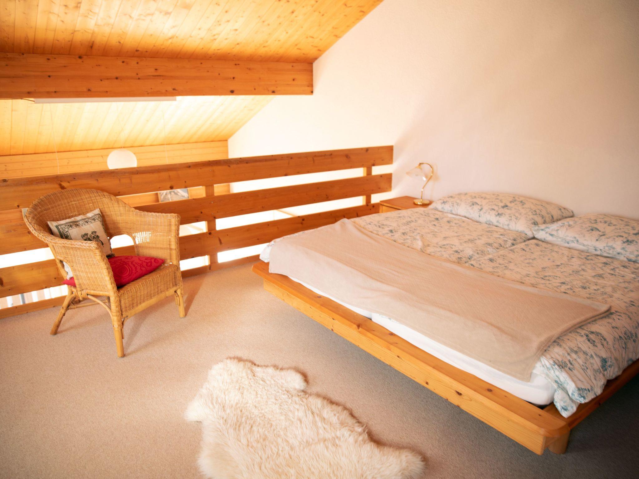 The apartment is comfortable and has a bedroom with three beds (two are a double-decker bed), a mezzanine with a large bed for two, a living room and balcony, a small but fully-equipped kitchen (including dishwasher, oven, raclette machine, capsule coffee machine, etc) and two bathrooms. TV, Internet and Chromecast are included. On the ground floor of the house you will find washer and dryer, and a room to store and dry equipment. Shops for basic necessities and a comfortable coffee house (called Bsinti) are in the village next to the funicular station 5 to 15 minutes walking distance away depending on speed and stops for photographs.