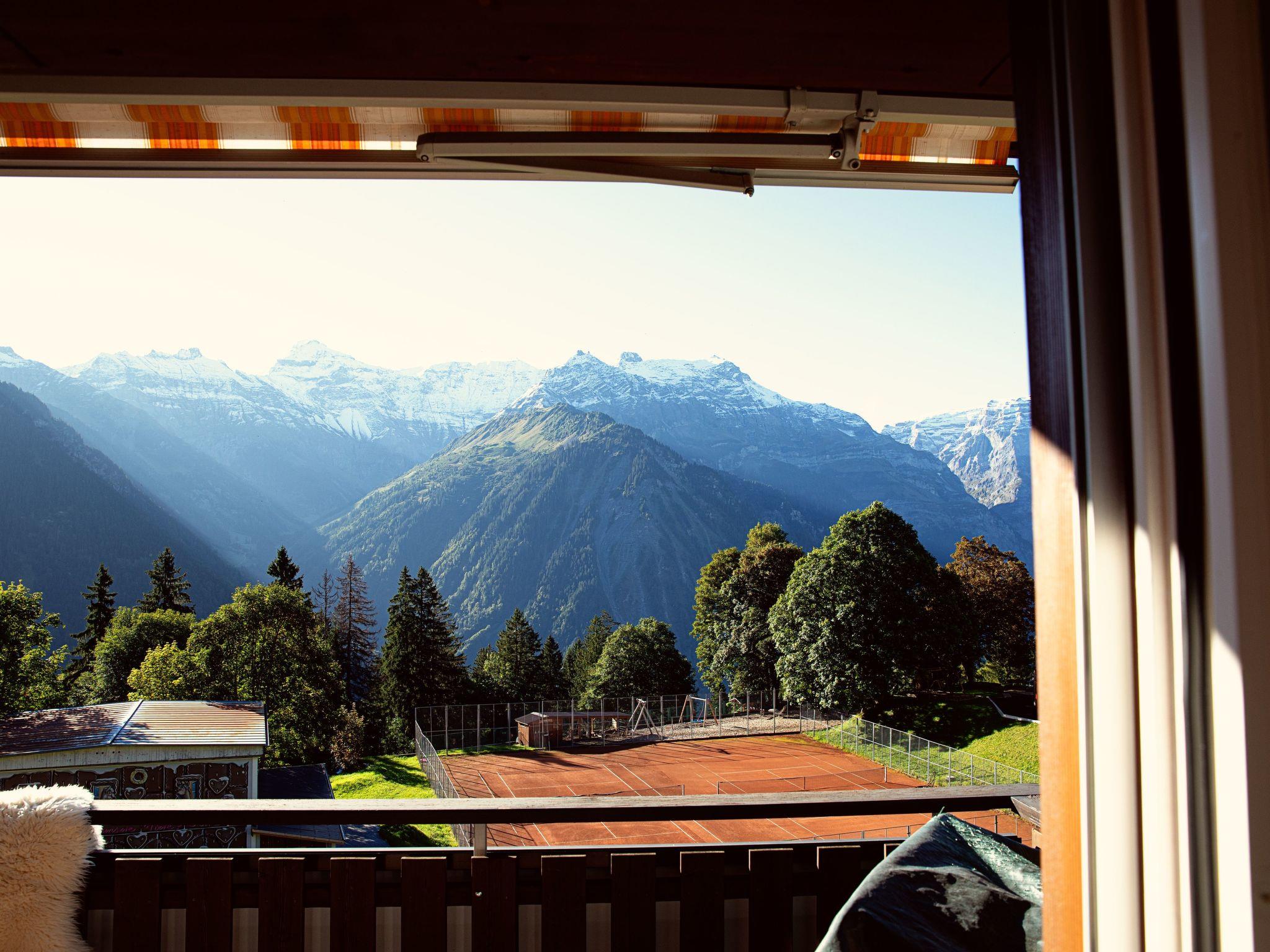 Braunwald is a car-free village on a south-facing terrace 1300 meters above see level and 700m above the valley floor. Our apartment is in a small house close to the Hotel Bellevue with a splendid view on the mountains across the valley (Hausstock, Tödi, etc).