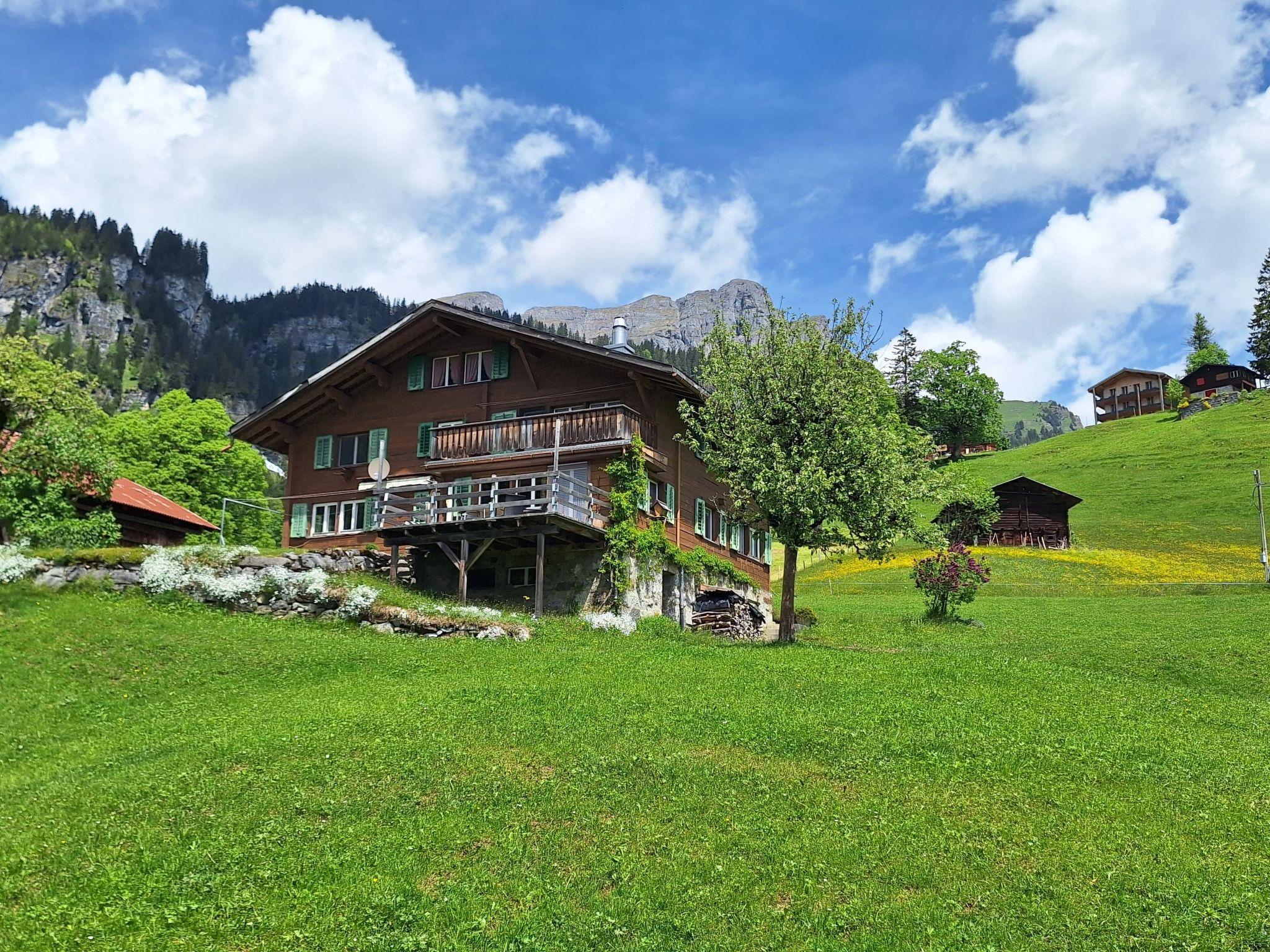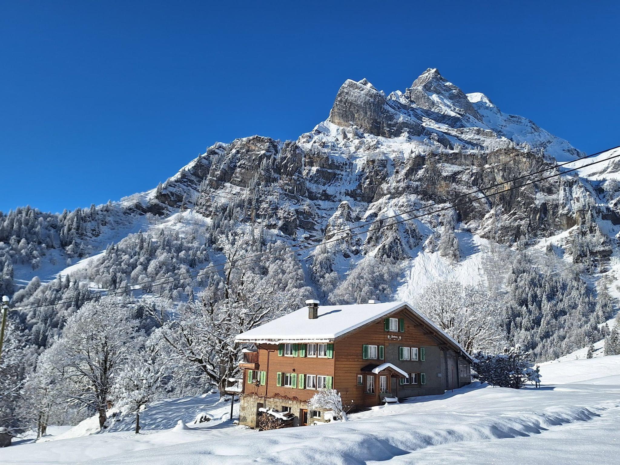 The holiday flat in Braunwald is situated outside the village in a quiet location with a view of the beautiful mountains. The house is detached and the distance to the next house is a good 100 metres. The flat offers space for up to 7 people and more and is located in a former farmhouse. The flat has four bedrooms and a small shower and WC. It has a charming parlour with a beautiful terrace, which invites you to linger. The kitchen is fully equipped. (cooker with oven, dishwasher, fridge with freezer compartment, kettle and capsule coffee machine). The flat is heated by a tiled stove. A washing machine and tumble dryer are available for shared use.
