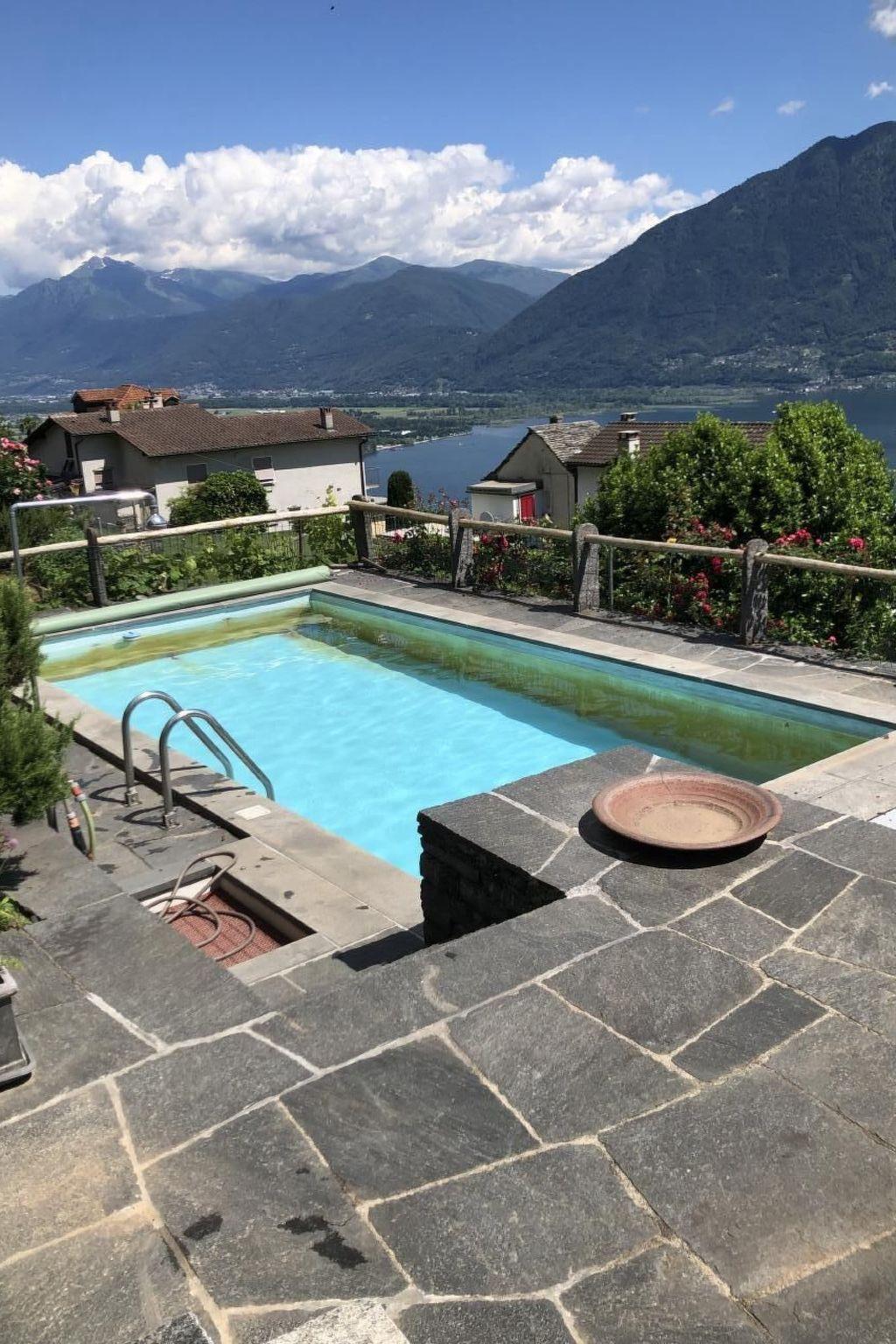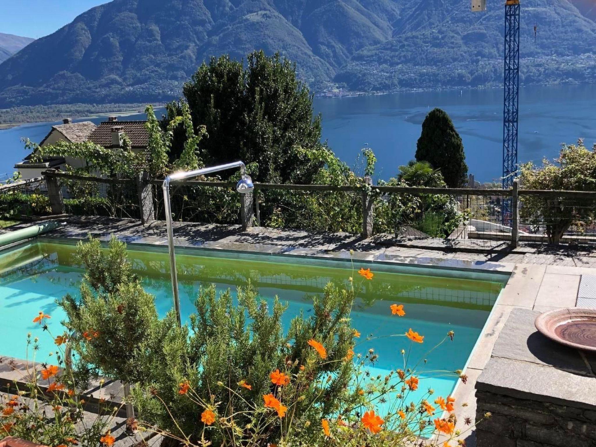 The holiday flat of approx. 65 m2 and a large terrace is in a very quiet location in Brione, on a hill above Locarno. From here you can enjoy a wonderful 180° view of the lake, the Brissago islands and the surrounding mountains. Via a garden staircase and your own partially covered terrace, you enter directly into your living room. There is a table with 4 chairs, an armchair and a sofa that can also be converted into a bed. There is also a TV and a radio. Through a door you enter the bedroom with 2 beds and 2 wardrobes. Through a second door from the living room you enter the rear part of the flat with the kitchen and the bathroom with a shower. Two small restaurants and a grotto are located in the old village centre of Brione about 200 m walking distance from the house, also the bus station is there, near the church. You can go on beautiful hikes and bike tours directly from the house. The lake shore can be reached in 10 minutes by car. The Bolle di Magadino for bird watching, the Maggia valley, the Verzasca valley and the Onsernone valley - to name just 3 of the picturesque valleys - are also close by, or you can hike or cycle up the surrounding mountains, or simply along the lake or the Maggia. Locarno itself has a spa and 2 public swimming pools, the Camellia Park, a falconry, various museums, a castle, churches worth seeing and a beautiful old town. Ascona is 4 km away, Bellinzona, the capital of the canton of Ticino with its famous castles, is 16 km away, Lugano 22 km and Milan 85 km. the Locarno Film Festival, Moon and Stars or the Ascona Jazz Festival and much more ensure international fame. as WiFi is available, the flat is also well suited as a home office.