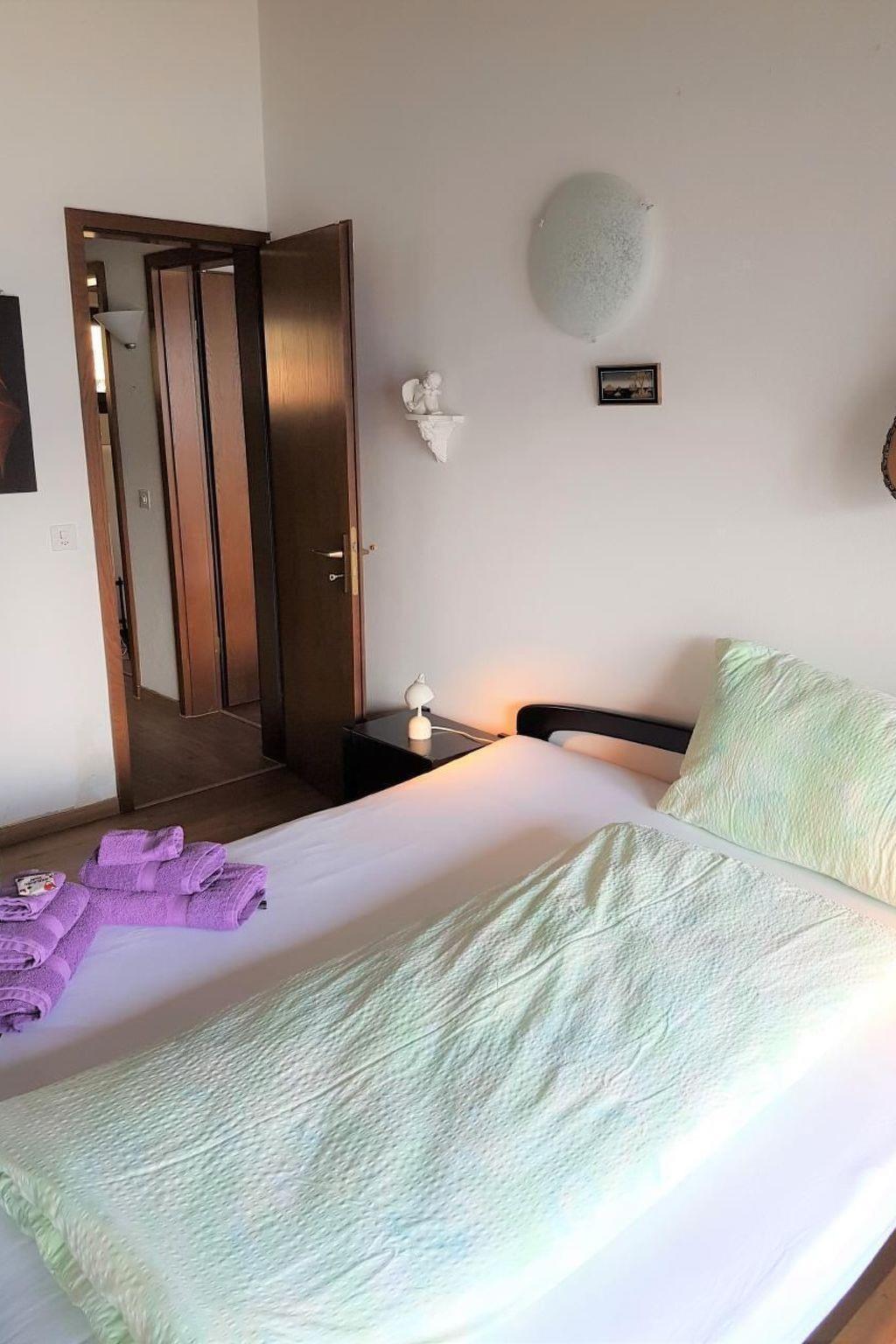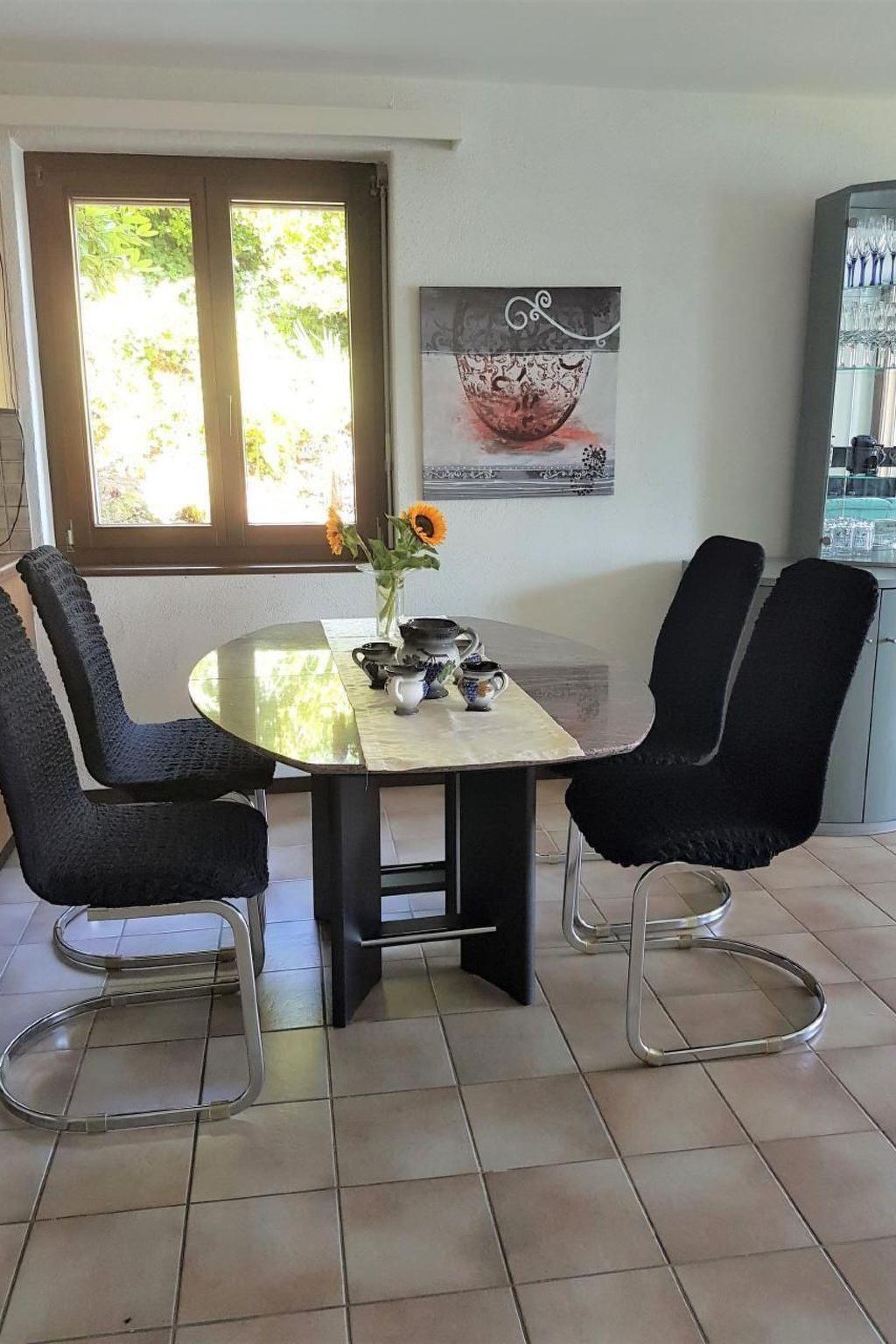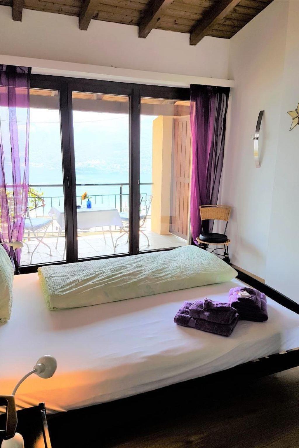It doesn't get any more beautiful than this! The spacious and bright 4.5-room villa above Brissago spoils you with a breathtaking 180° view of Lake Maggiore. The panoramic view extends from the Swiss Alps with the lakeside towns of Locarno and Ascona to the Italian lake basin. You can also see the landing stage and the castles of Bellinzona, illuminated at night. Whether on the terrace, balcony, in the garden or at home, you will always have the beautiful lake in front of you. If you want to spend a relaxing holiday in a picturesque setting, the 'Villetta Vista Bellissima' welcomes you and offers comfortable space for up to 4 people. The cottage is part of a charming and well-kept estate with four flats and is located at the end of a quiet private road bordered by a forest and palm groves. Although we have advertised this property as a flat, you can enjoy your own 'cottage' as it offers great privacy. The wonderful thing about the Villetta is that you can live either indoors or outdoors, depending on your mood and the time of year. Outside, in addition to the large pergola and balcony on the first floor, there is a romantic garden seating area with an open fireplace and another secluded, slightly elevated seating area where you can enjoy a cosy evening with an aperitif. If it gets a little chilly, just move inside. On the ground floor, a comfortable living-dining area with an open, well-equipped kitchen awaits you. The whole is crowned by a spectacular view of the lake. A guest toilet is directly adjacent. On the upper floor is the bathroom with double washbasin, bathtub/shower and WC, as well as three bedrooms, all with lake views: - One bedroom with double bed and direct access to the balcony. - The second bedroom, also with access to the balcony, offers a pull-out sofa bed and three mattresses on the attic loft, which can be reached via an open staircase. Great fun, not only for the kids! - The third room is equipped with two single beds. If you feel the need to dive into the cool water after a heavenly quiet night, you have a short walk of about 7 minutes ahead of you. At your disposal is a shared 11 x 5.5-metre swimming pool with sunbathing lawn and outdoor shower. Tip: The months of December to February are those with the fewest rainy days of the year, which means that there are already a few hours of warm sunshine to spend outdoors. Those in need of peace and quiet will really appreciate these months. Important note: There is direct access to the house, but not to the flat. Access is via several stairs (84 steps in total).