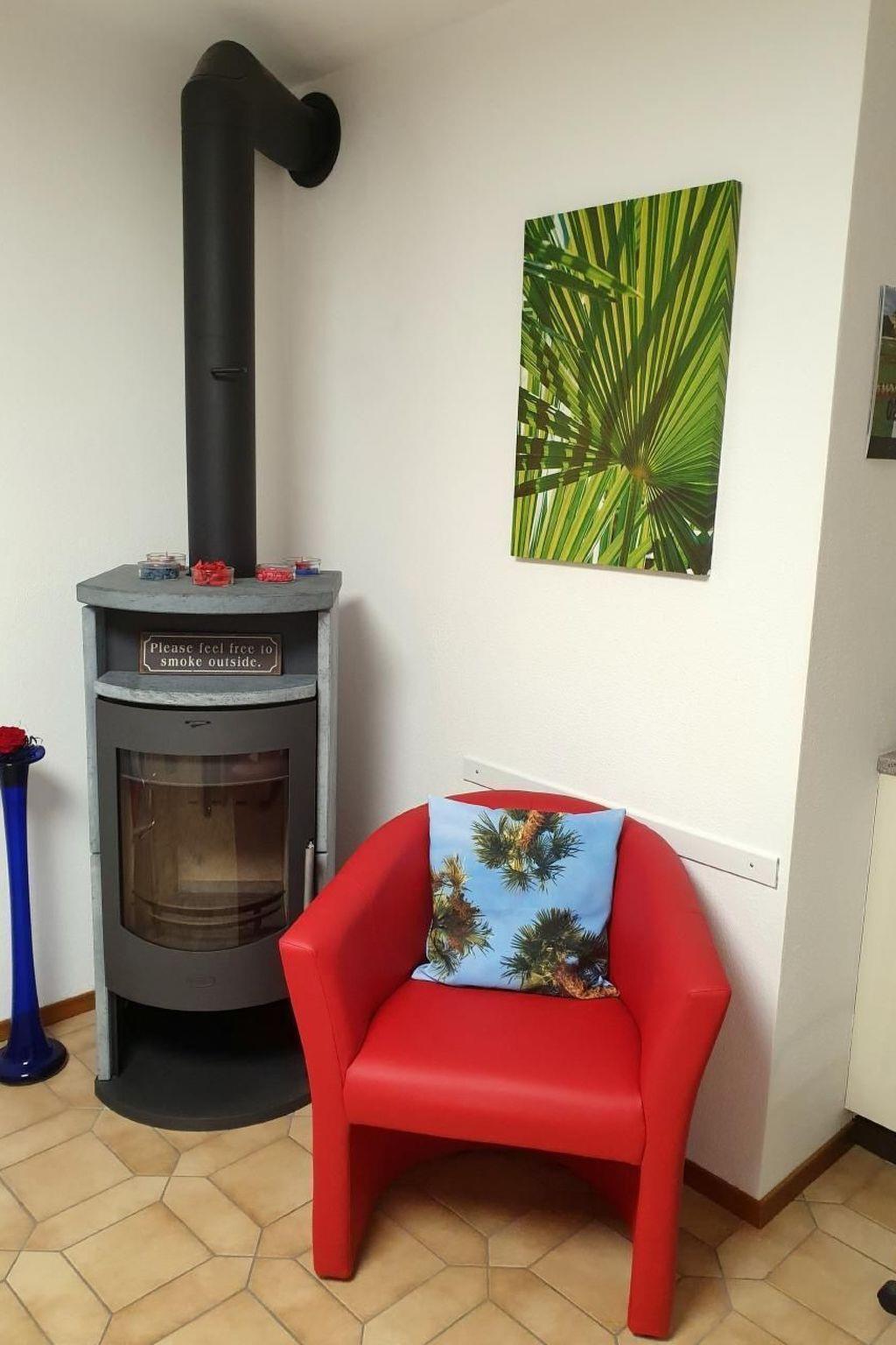 Casa Ghiggi is a typical Ticino house, in a sunny and quiet location, with a beautiful view of the lake (Lago Maggiore) and the surrounding mountains. The large garden has a heated swimming pool 4x8m (approx. mid-April - mid-October), whirlpool and sauna (minimum age for both: 12 years), pergola with granite table/benches, large barbecue grill, deckchairs, parasols, shower and small play corner. In the basement there is a large selection of toys and a fitness/games room. The house is a 10-minute walk from the lake/shops/post office/bank/bus stop. Washing machine and tumble dryer are available for a fee. The 2-room apartment "Ticino" is located on the 1st floor of Casa Ghiggi and has been rated 4.5 stars by the local tourist office. The flat has 2 balconies and is extensively furnished. The flat has a covered car park (2.5m high) next to the house with a charging station for electric cars (for a fee). The nicely furnished 2-room apartment (50m²) has a beautiful granite kitchen with ceramic hob, oven/steamer, microwave, dishwasher, fridge, freezer, extensive kitchen utensils, coffee and espresso machine, as well as Delizio capsule coffee machine. There is also an extra bed (for a third person) in the double bedroom (duvet Nordic 160 x 210cm). The living room is equipped with a dining table, tiled stove, seating area, lounge table, Sunrise TV (7-day replay function), DVD and radio/CD player as well as WLAN. The bathroom has a shower bath with WC, washbasin and hairdryer. Both balconies are equipped with sun blinds, tables and chairs and offer a view of the lake and mountains. The non-smoking flat offers space for a total of 3 people. Casa Ghiggi has been awarded the "Family-friendly" seal of approval by the tourist office. A wide range of baby equipment (e.g. cot, high chair, buggy, nappy changing unit) is available to our guests on request. In the cellar, our guests benefit from various toys. In the leisure room there is fitness equipment, table football, darts, games (computer with games, printer, Nintendo, board games and books) and a large selection of DVDs.