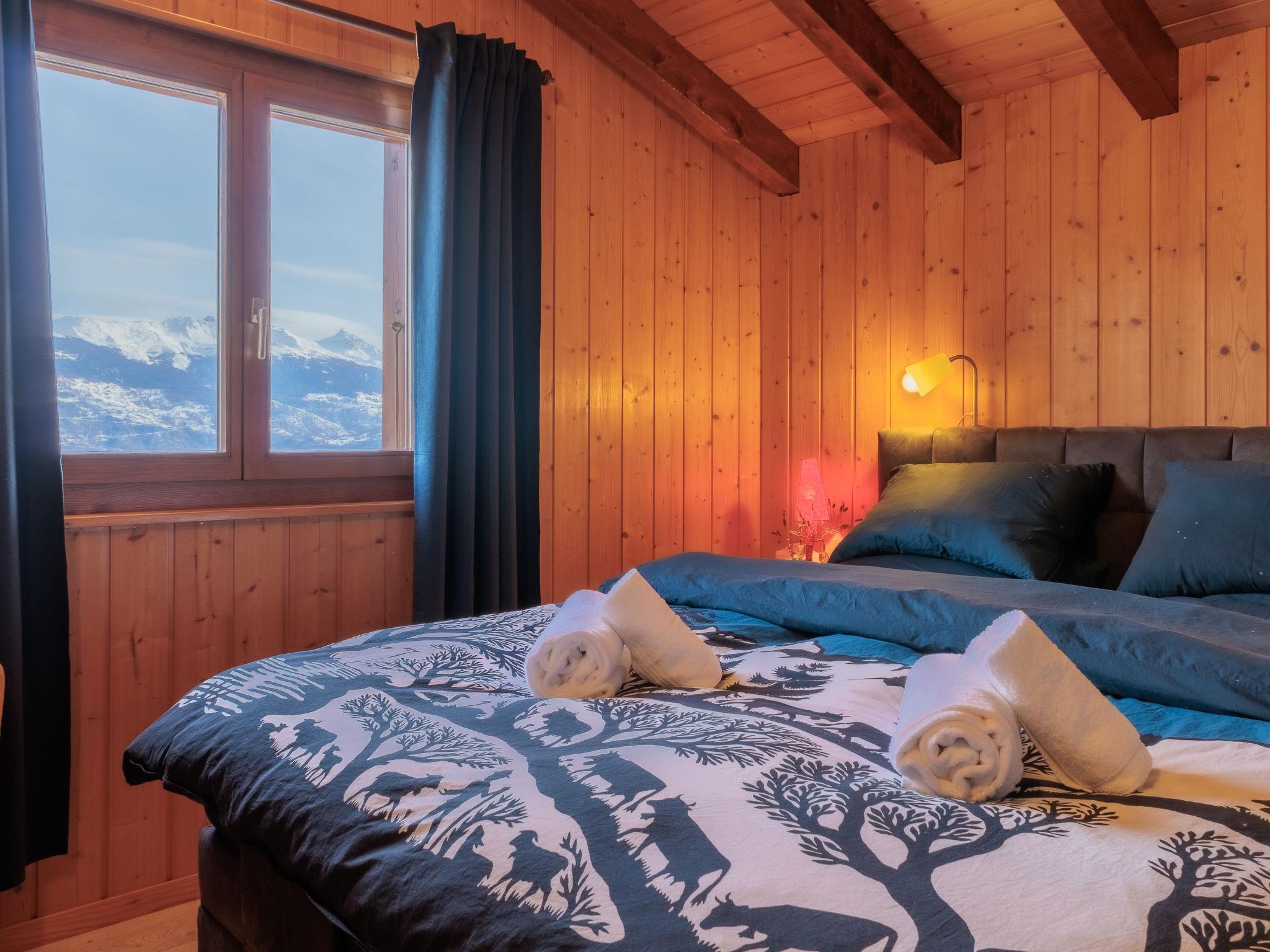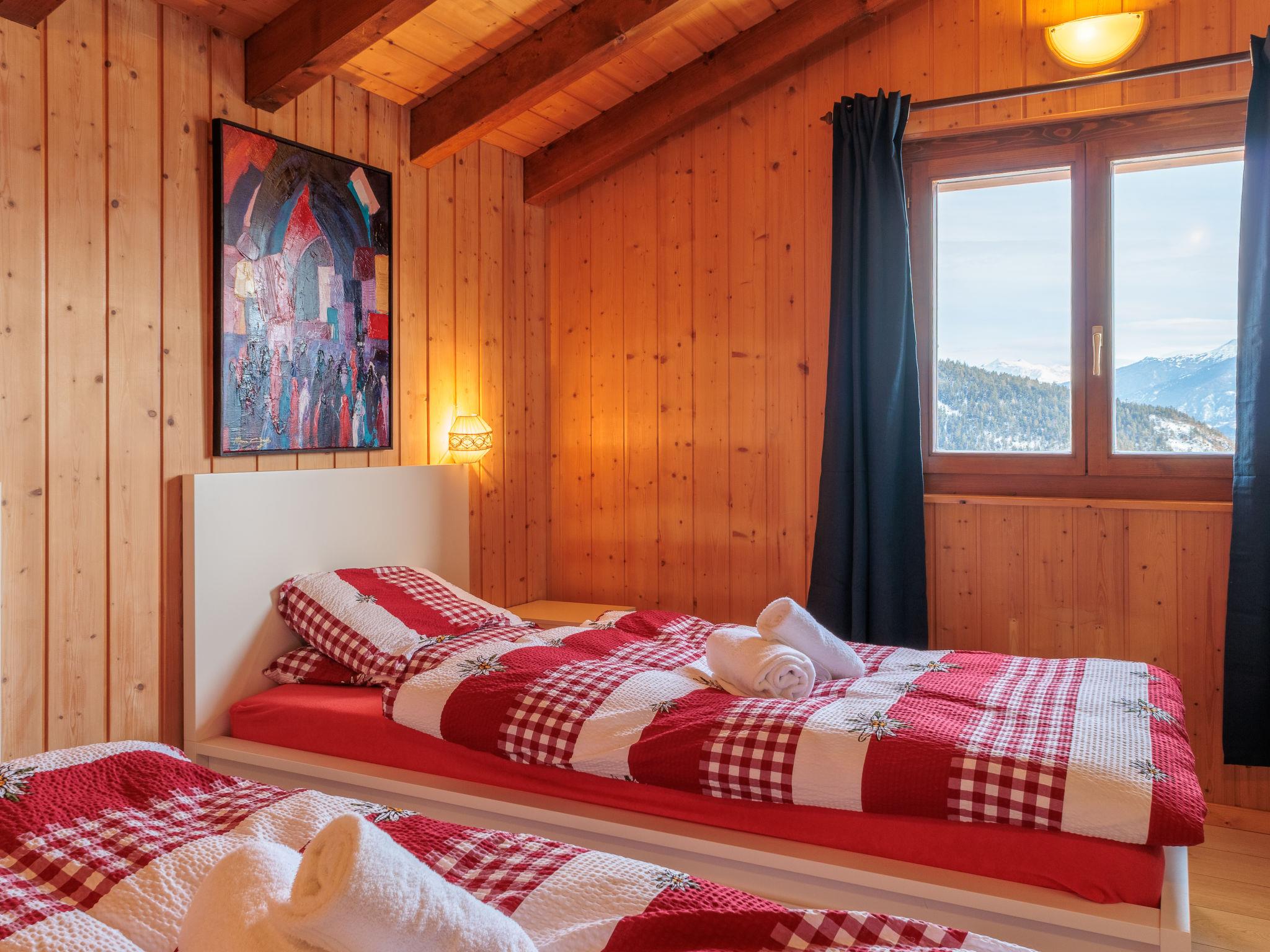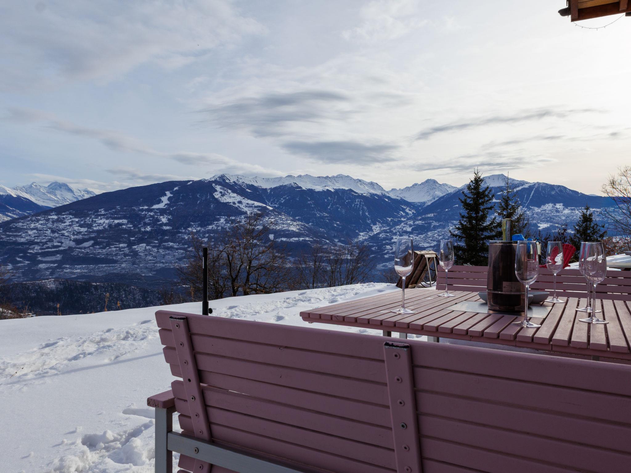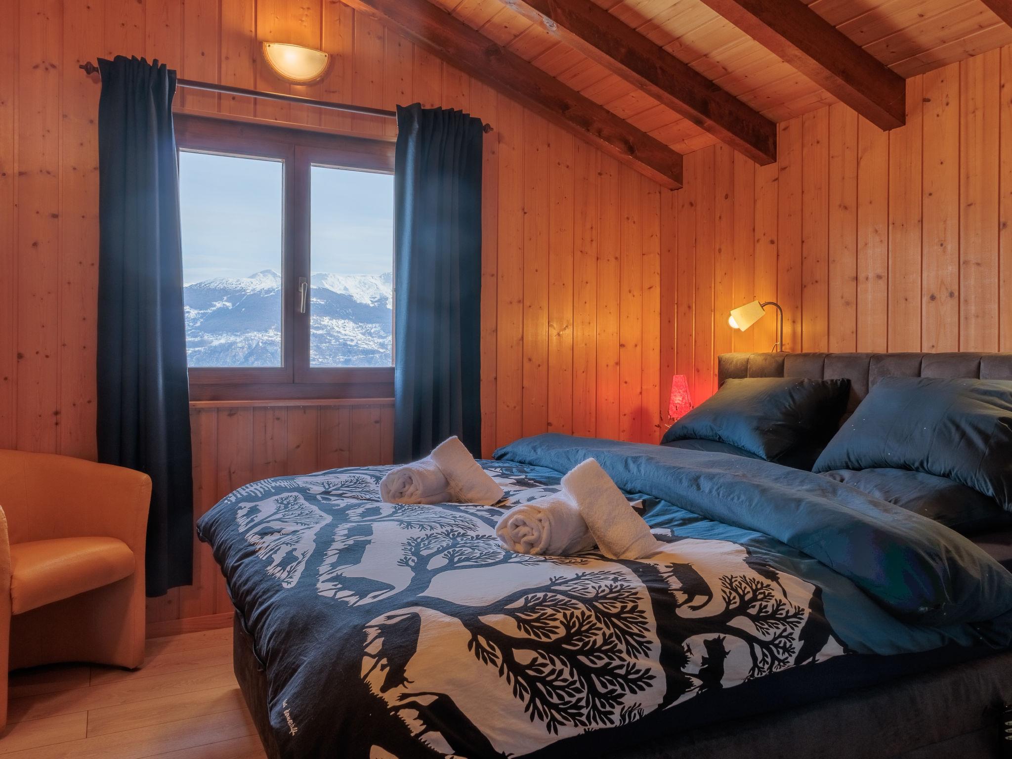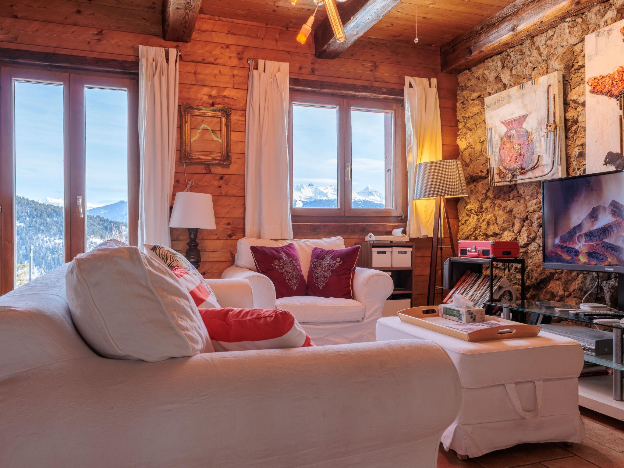 "Mayens du Rudet", 4-room chalet 125 m2 on 2 levels, south facing position. Beautiful and cosy furnishings: living/dining room with open-hearth fireplace, cable TV and DVD. Exit to the garden. Open kitchen (4 hot plates, oven, dishwasher, kettle, microwave, electric coffee machine, Capsules for coffee machine (Nespresso) extra, raclette grill, fondue Set (cheese)). Sep. WC. Heating. Upper floor: 1 room with 1 french bed (160 cm, length 200 cm). 1 room with 2 beds (90 cm, length 200 cm). 1 room with 1 french bed (140 cm, length 200 cm). Exit to the terrace, north facing position. Shower/WC. Forced-air heating. Heating not available in all rooms. Terrace, garden, south facing position. Terrace furniture, barbecue, conservatory. Marvellous panoramic view of the mountains and the valley. Facilities: washing machine, dryer. Internet (WiFi, free). Parking (3 cars). Please note: non-smokers only.