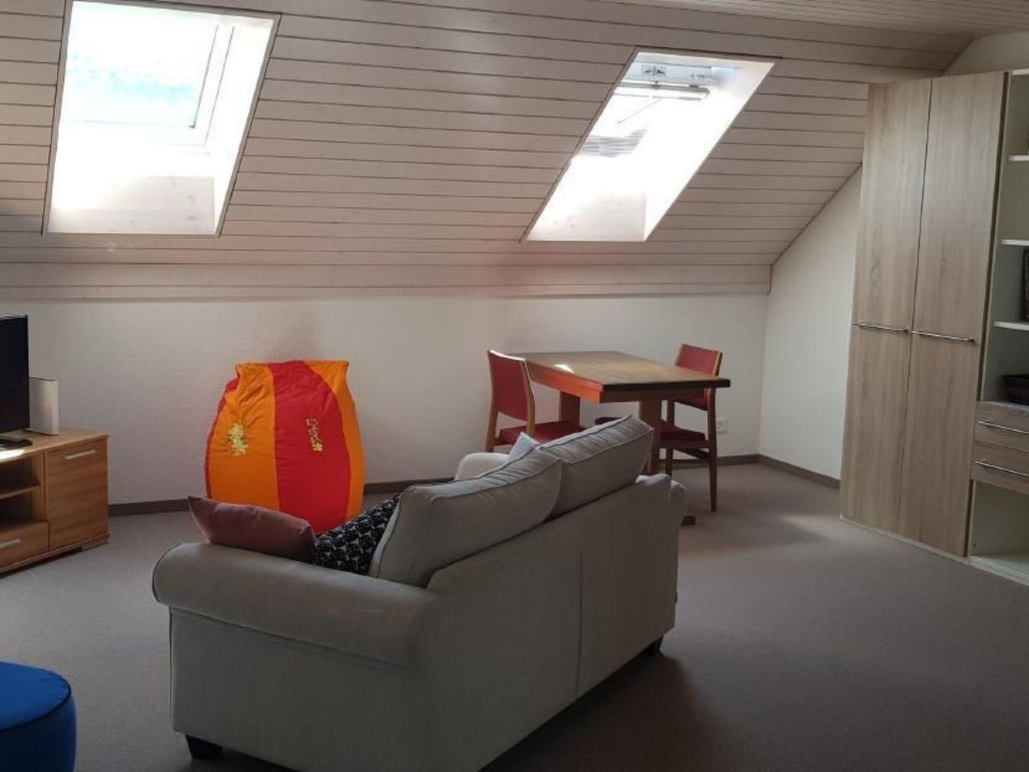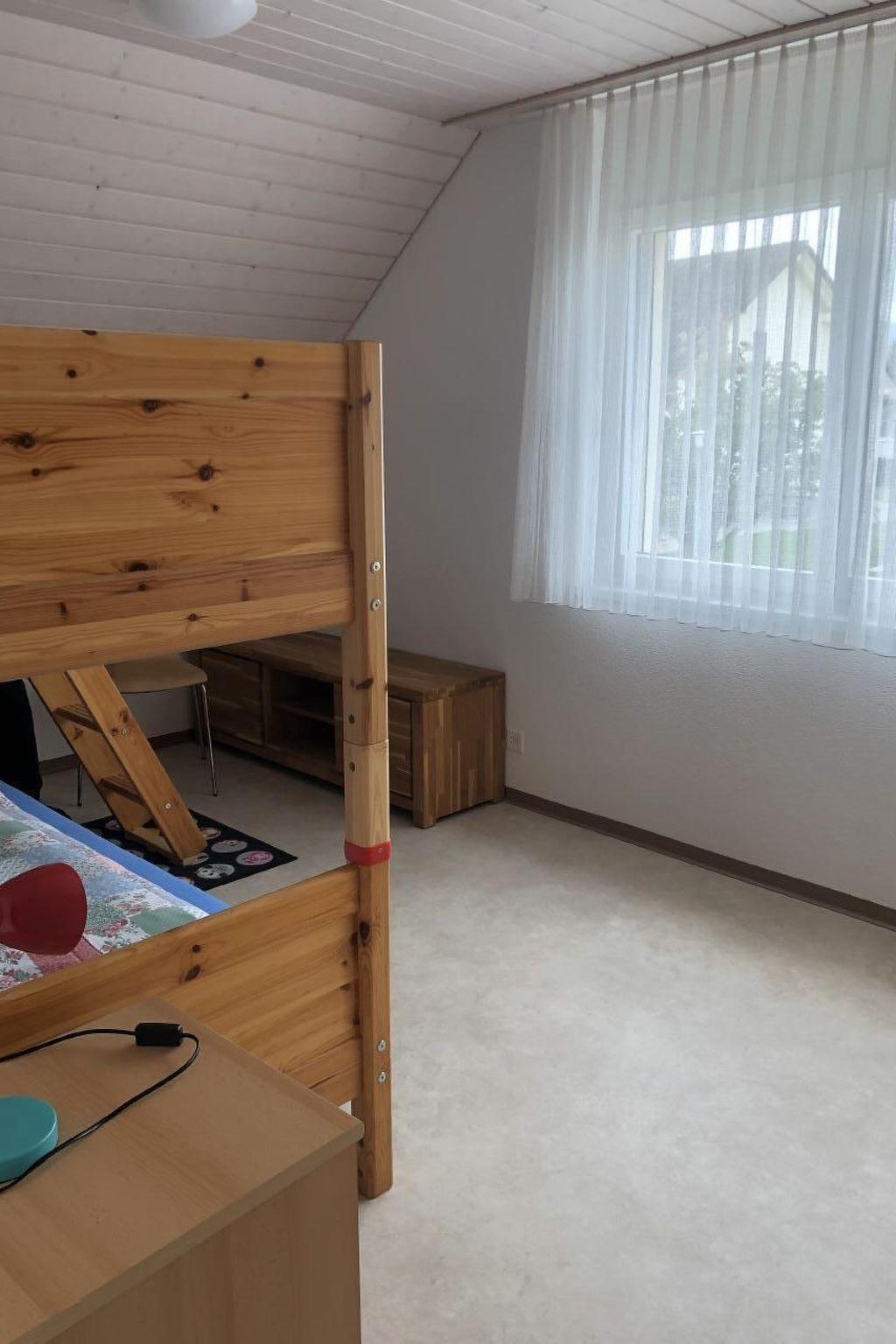 A staircase leads to the open-plan lounge with television (Swisscom TV), DVD player, seating area and games table. Various games and toys are available.