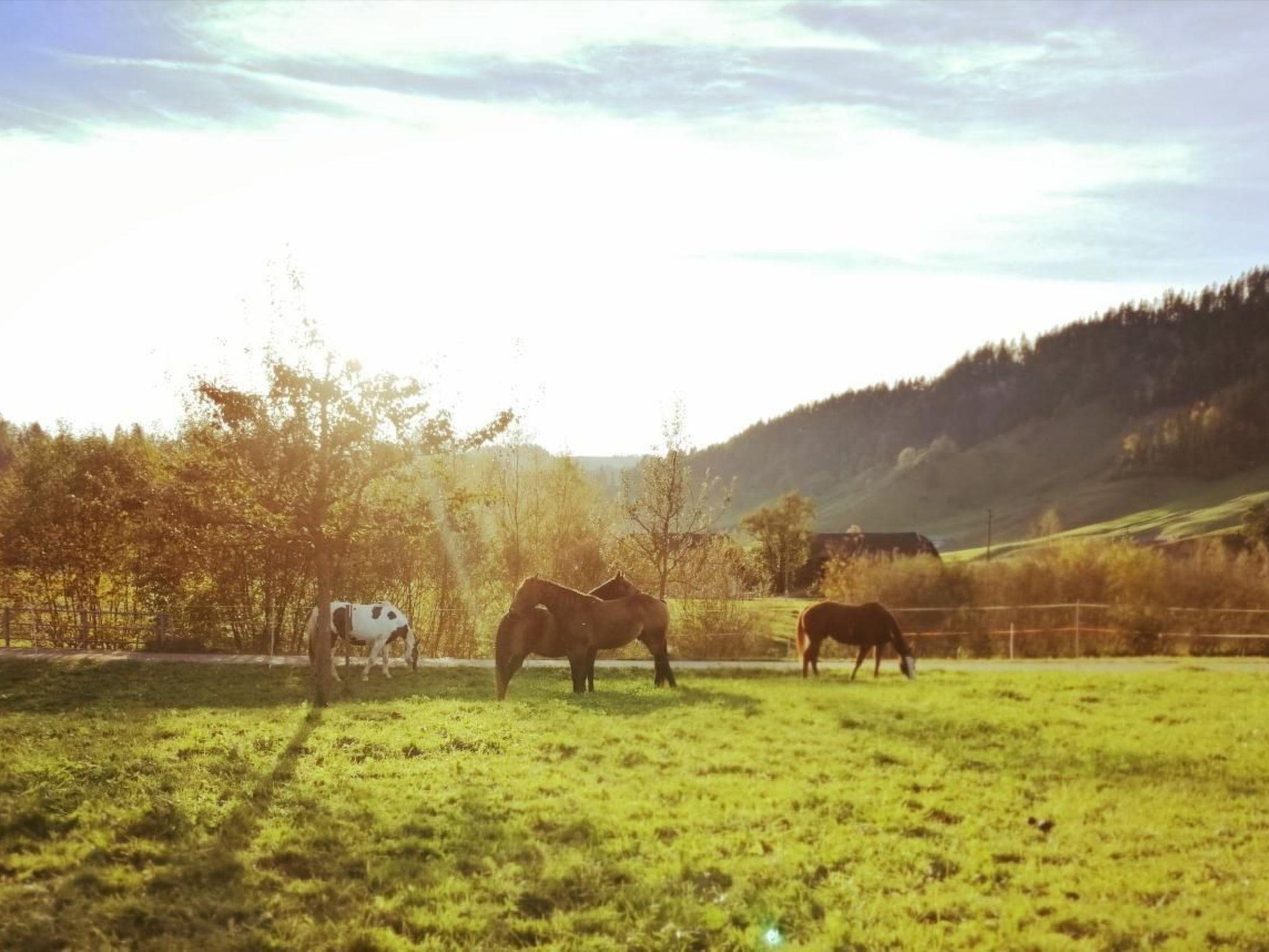 We live in a small village with about 3'000 inhabitants and consists mainly of small farms like us. The nostalgic church in the middle of the village makes the village centre unique. Our farm at 850 m is located about 1.5 km from the village centre and lies at the foot of the Beichlen 1700 m.