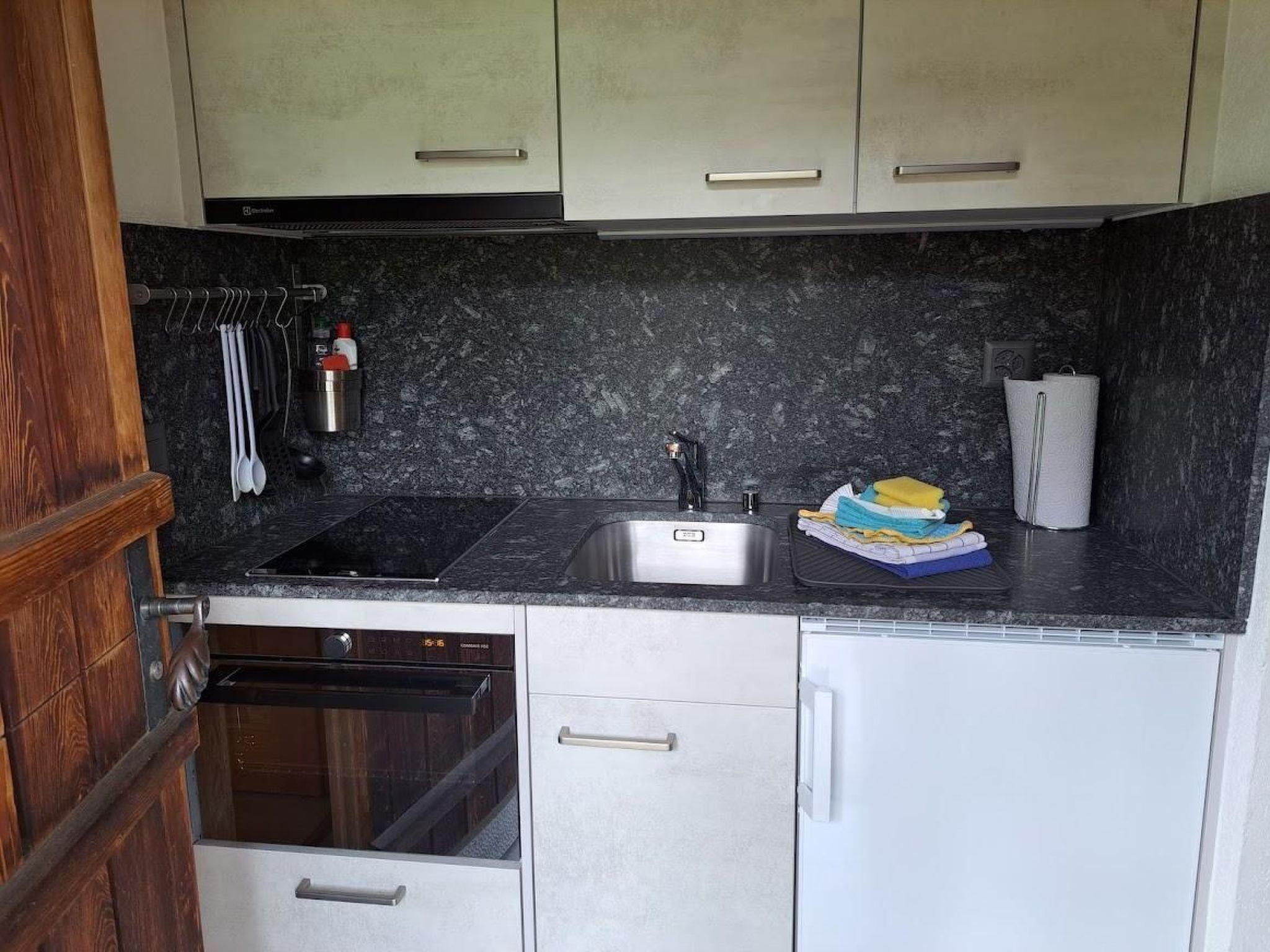 The holiday flat is situated just above Fiesch in a very quiet location. It is a good 1.5 km to the village centre by car and approx. 1 km (15 min) on foot. The railway station/cable car can be reached on foot in about 20 minutes. Parking is available, the flat is then accessible via a staircase. There is a bedroom with a French bed (1.4x2m), a living room with a sofa that can sleep up to two people if required, a bathroom with shower and a new kitchenette with two hobs and oven