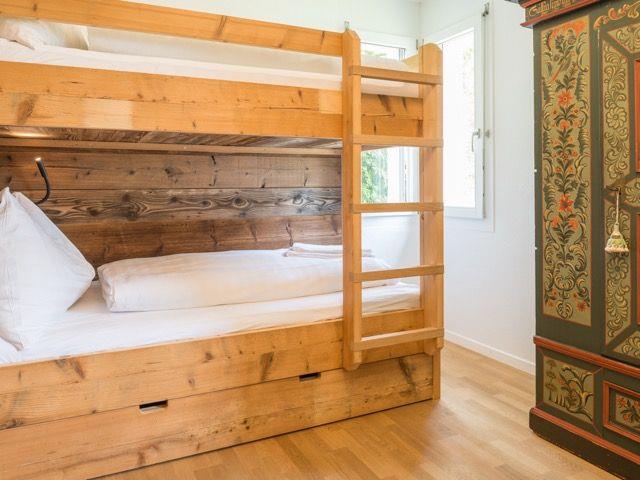 Die Wohnung bietet hohen Wohnkomfort mit zwei modernen Bädern (ein Bad mit Dusche, ein Bad mit Badewanne), einer komplett ausgestatteten Küche, einem Schlafzimmer mit Doppelbett, einem Gästezimmer mit zwei Einzelbetten (zusammen oder getrennt stellbar), einem Kinderzimmer mit zwei Einbau-Doppelstockbetten sowie einem grosszügigen Wohn- und Essbereich mit einem Kamin. Bitte beachten Sie, dass das Holz für den Kamin selbst organisiert werden muss.