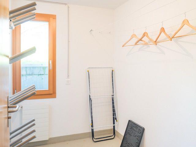 Zur gemeinschaftlichen Nutzung im Haus stehen Skiraum, Terrasse, Waschmaschine und Tumbler auf derselben Etage bereit. Zusätzlich verfügt die Wohnung über einen privaten Abstellraum mit Skischuhtrockner, eine Garage sowie einen zweiten Parkplatz direkt vor dem Haus.