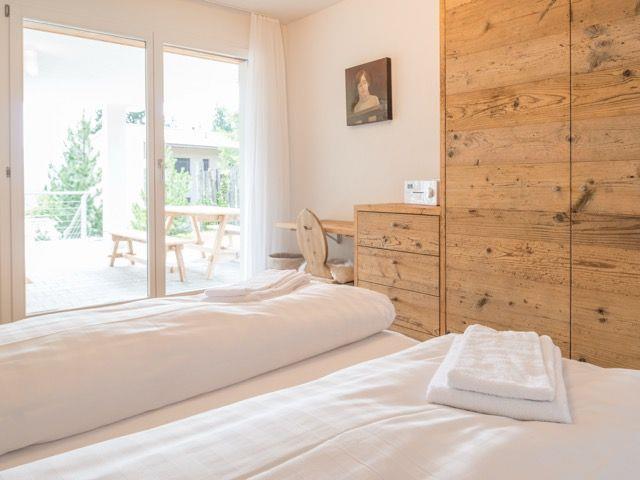 Komfortable 4.5-Zimmerwohnung (105?m², 6 Betten) in einem luxuriösen Zweifamilienhaus oberhalb von Flims Dorf. Die Wohnung liegt an ruhiger, sonniger Lage in einer wenig befahrenen Sackgasse, direkt an der Skipiste und nur ca. 1?km vom Zentrum von Flims entfernt, mit traumhaftem Südblick.