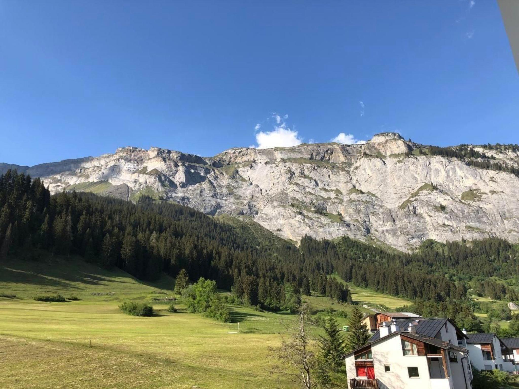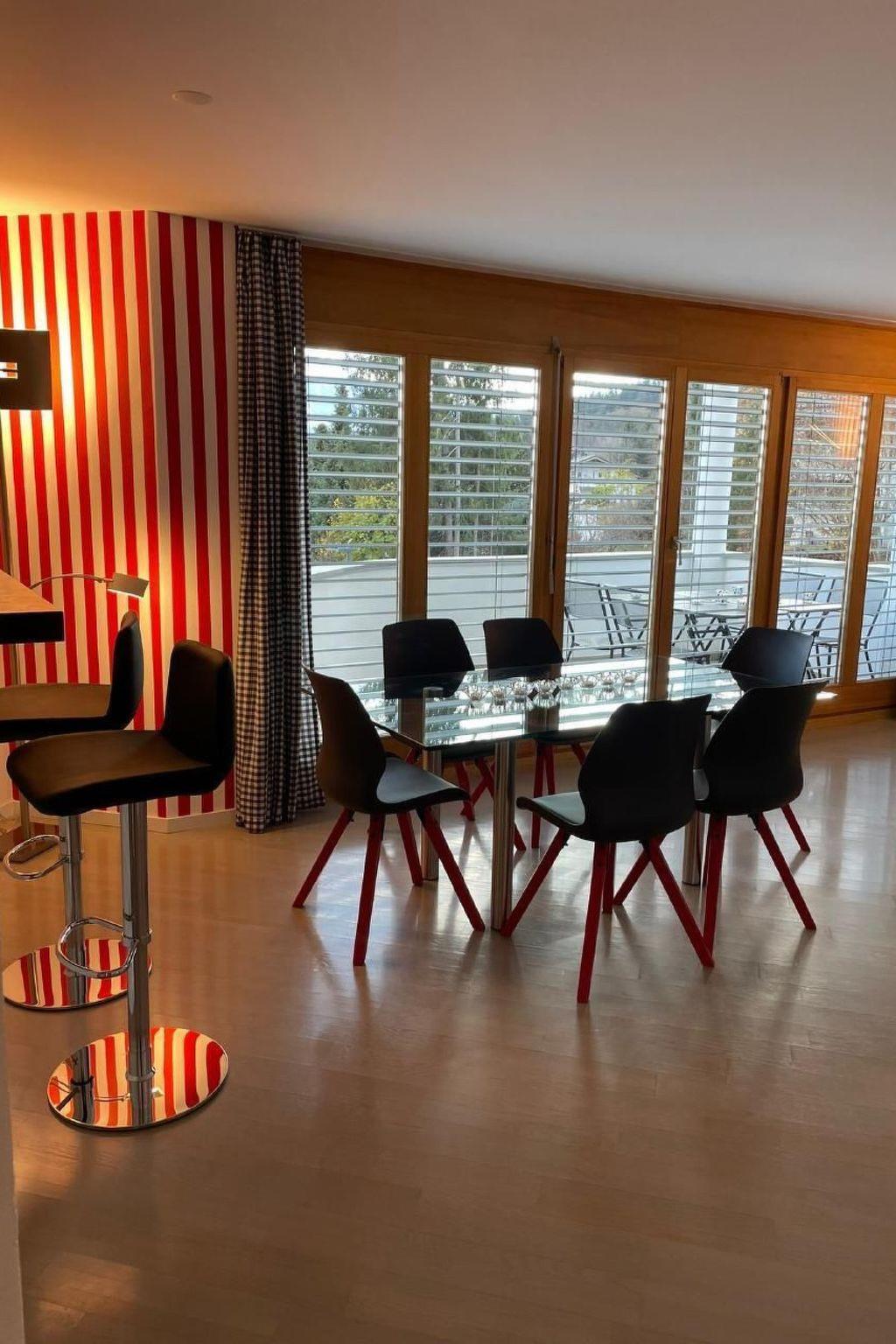 Luxurious 3.5 room apartment with a panoramic view of the mountains and the entire village of Flims with direct access to the Ski slope. The apartment was completely renovated in October 2020 and has 2 covered balconies. In the first floor there is a 15 square meter sauna room that only belongs to this apartment (with bio sauna and shower).