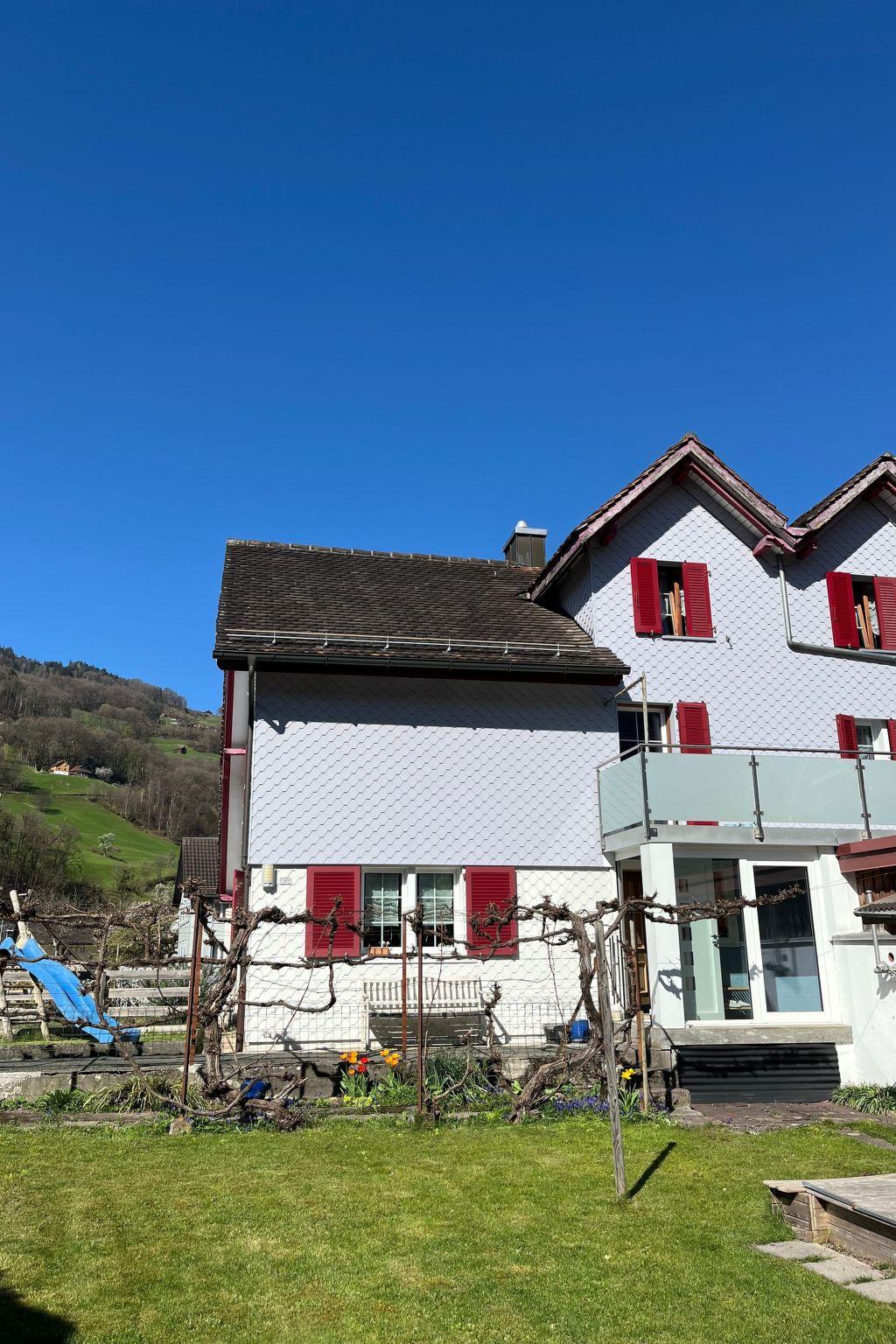 This charming holiday home in Flums, ideal for up to 5 people with a baby or toddler, offers comfortable living space on the ground floor level. Equipped with three bedrooms, it allows families and friends to spend their holidays together. A bathroom with bathtub and shower is available. Guests are welcome to bring their medium-sized four-legged friend (up to 60 cm high) as the property is fully fenced and therefore safe for your pet.