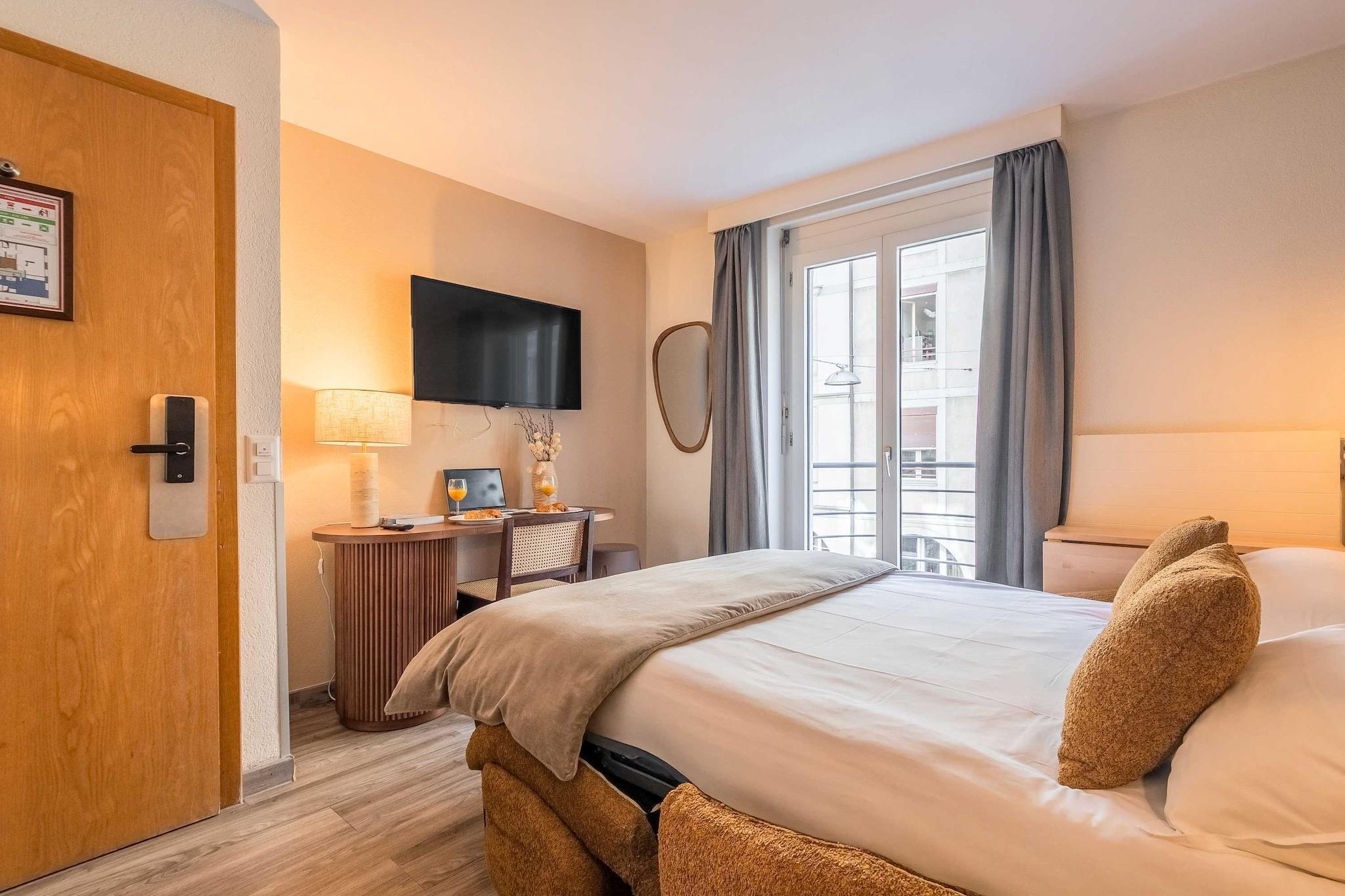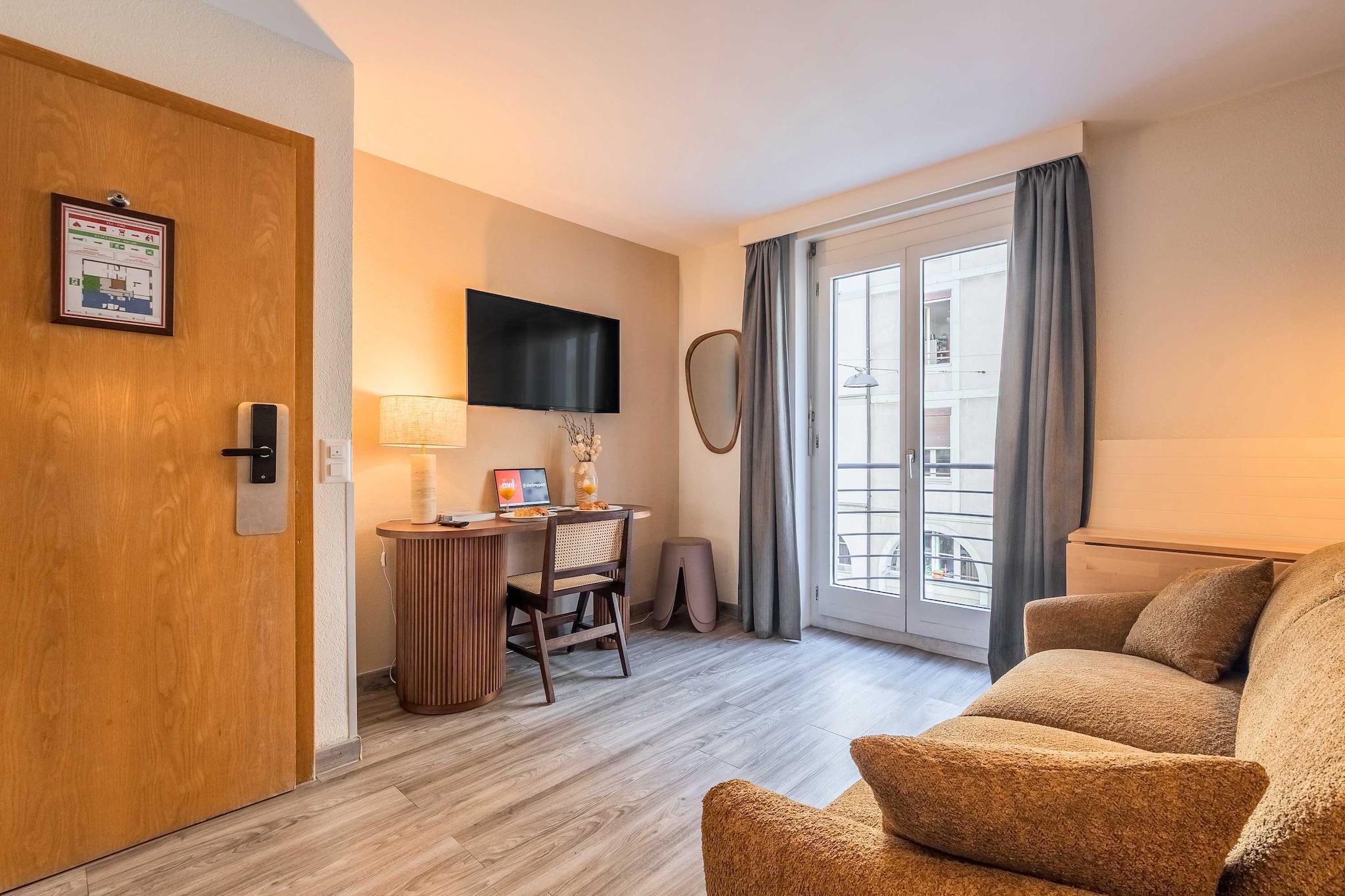 ??Checkmyguest offers you this modern 26m² flat, located on the 4th floor with lift, right in the heart of the Pâquis district in Geneva. Just a stone's throw from Lake Geneva, enjoy a comfortable and fully equipped setting for an unforgettable stay. The flat's location means that you'll be able to get around the city quickly and easily using the many public transport options available: ?? BUS: Monthoux (line 1,25 ), 2 minutes' walk away. ?? Bus station: Geneva Bus Station (BlaBlaCar Bus, Swiss Tours...), 4 minutes' walk away ?? Cornavin Station (trains to the airport, Lausanne, Zurich...), 7 minutes' walk away ?? Publibike: self-service bicycle hire service ?? Taxis and VTC available in the area