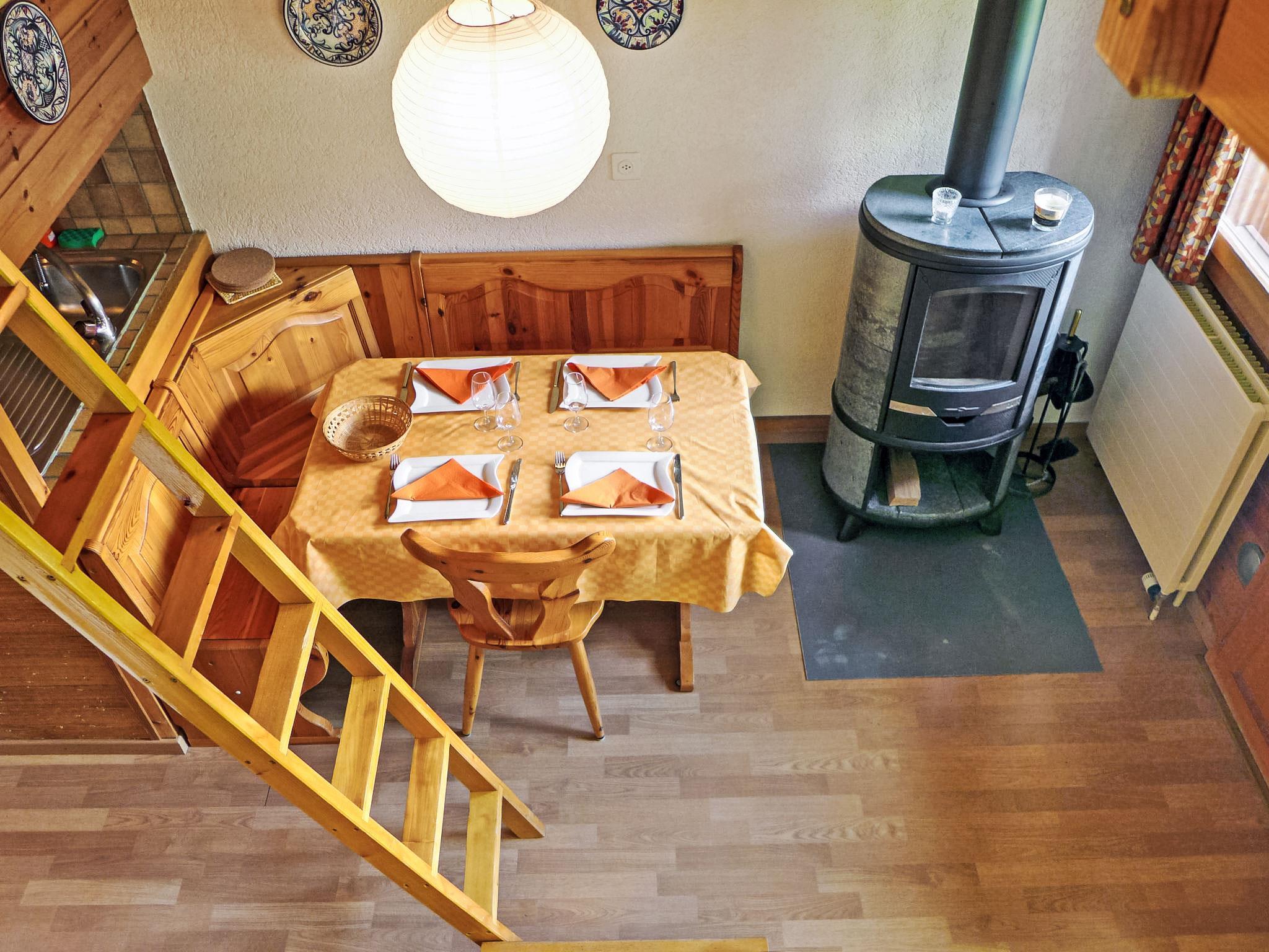 "Tarcianne Apt A6", 2-room apartment 40 m2 on 2 levels on 1st floor. Partly renovated in 2022, simple and practical furnishings: living/dining room with Scandinavian wood stove, dining table and cable TV. Exit to the balcony. Small, open kitchen (4 hot plates, oven, dishwasher, electric coffee machine, Capsules for coffee machine (Nespresso), raclette grill, fondue Set (chinoise, cheese)). Bath/WC. Upper floor: (open staircase), 1 room with 1 double bed. Exit to the balcony. (ladder) gallery with 2 beds. 2 balconies. Balcony furniture. Very beautiful view of the mountains and the countryside. Facilities: Internet (WiFi, free). Garage (extra). Please note: not suitable for small children. Non-smokers only. Instead of an enclosed bedroom, some sleeping areas are located in an open-plan area (gallery, alcove, etc.).