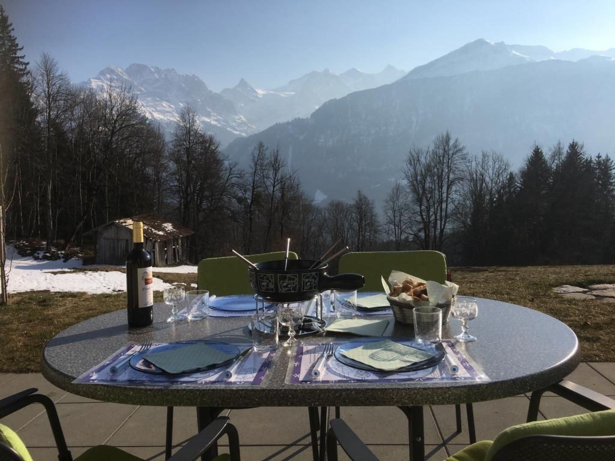 The living room, as well as the seating area, invite you to linger and offer a marvellous view of the mountain range and the Rosenlaui glacier. The flat is in a very quiet location. The neighbourhood and the nearby stream are perfect for families to play and discover nature. The flat has a covered car park.