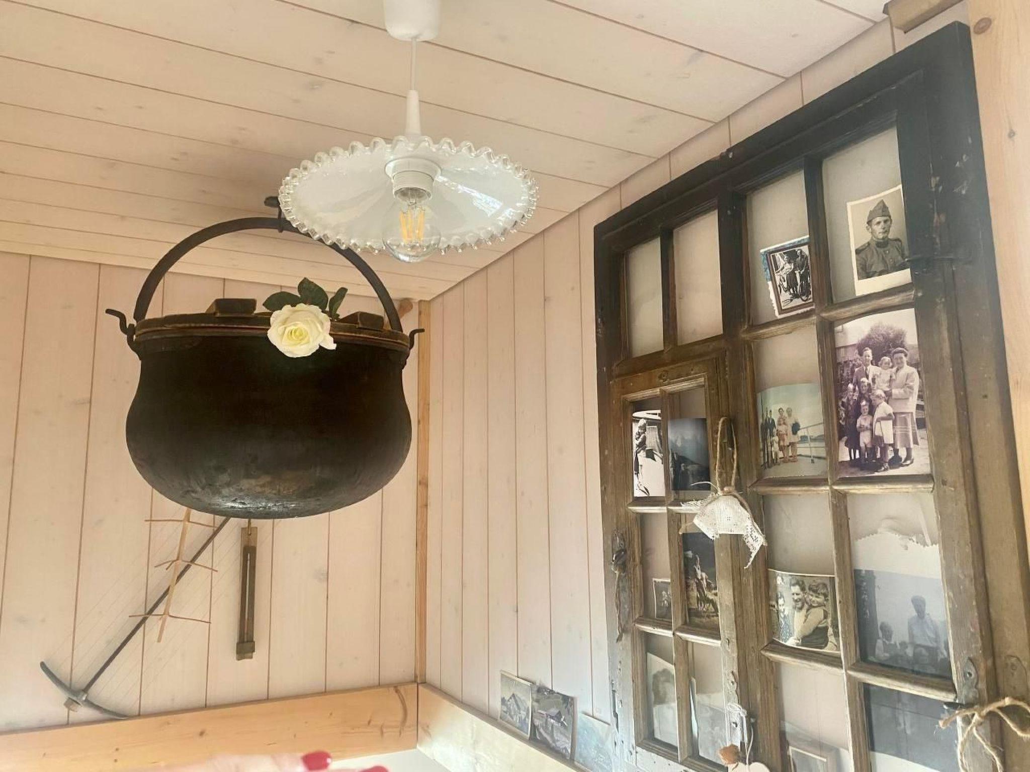 Outside, a balcony invites you to enjoy the peaceful surroundings and the fresh mountain air. The garden, which is shared, offers additional space for relaxation and outdoor games.