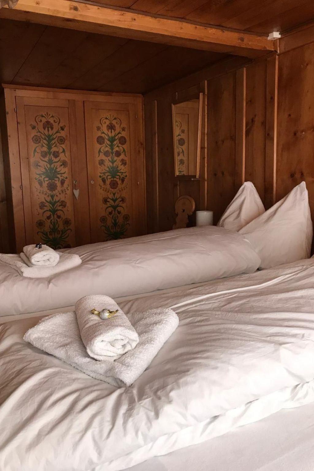 We let a 3 bedroom holiday flat in the upper floor of a house typical for the Hasliberg area, built in 1784. It is located in a sunny and quiet place in the Oberdorf of Hasliberg-Hohfluh, offering an amazing view to the mountain scenery, mainly the Engelhörner and the Wetterhörner. Food stores, post, bus Stopp and restaurants are within 5 minutes walking distance. The living- and bedroom part consists of two bedrooms (14 m2, 8 m2) with two beds each, and a living room (13 m2) with two extra beds. Each room has a spacey wardrobe and electric heating. The living room features a TV and radio. The kitchen with the dining area is in the center of the apartment, and contains a stove, oven, fridge with freezing compartment and a cosy wood stove. The bathroom features a bath tub, toilet and lavabo. In wintertime, the nearby bus stop is equally valued as the ski slope leading directly to the house. The storage room has sufficient space for skis, pram and other equipment (total area (56 m2).