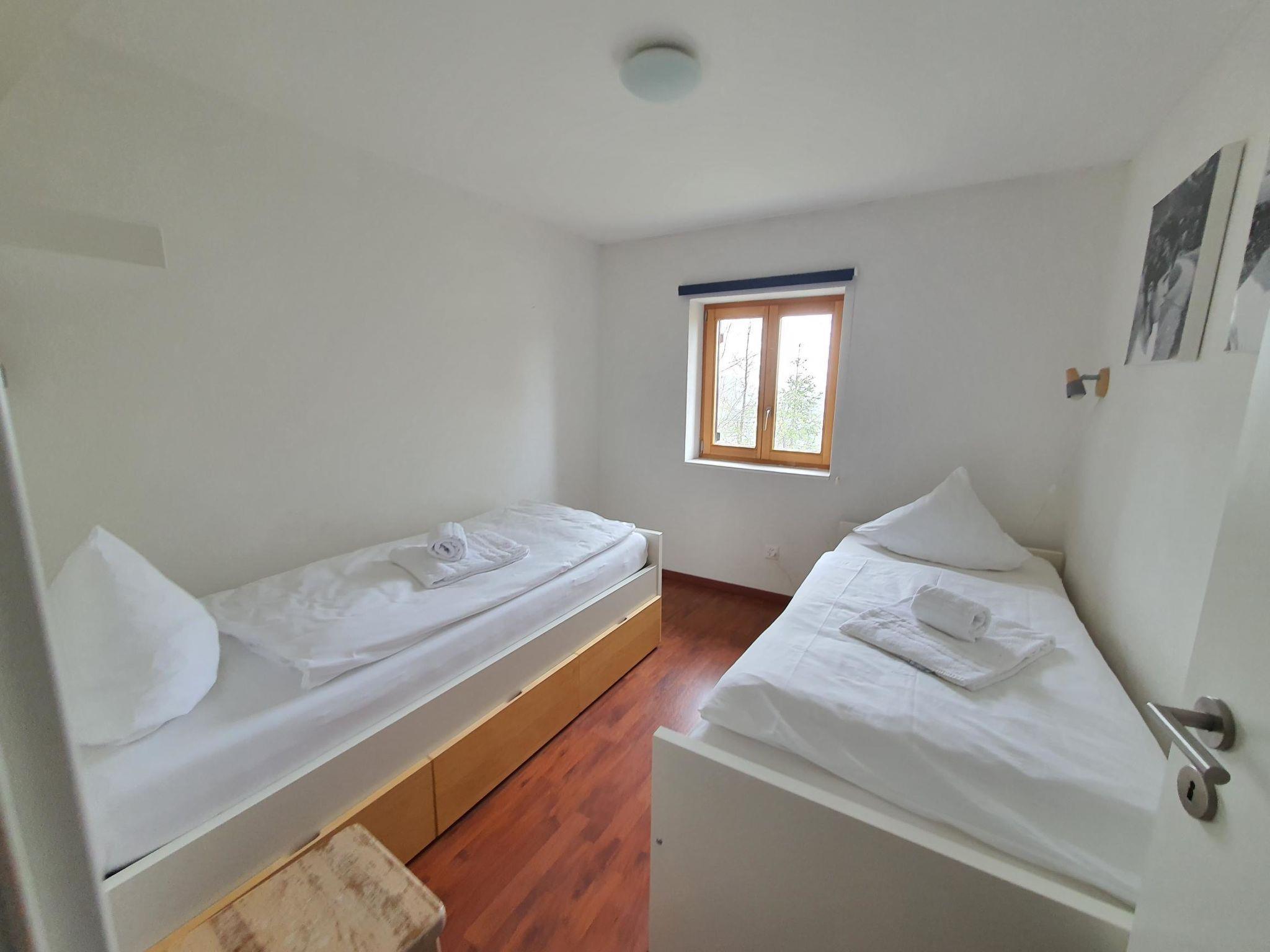 The single-family house consists of a living room with an open kitchen and a cozy garden patio and garden, 4 bedrooms, a bathroom with a bathtub and shower, 2 separate toilets, a separate laundry room and a shed. Room distribution: - On the ground floor, there is the living room with the open kitchen and cozy garden patio and garden. The kitchen is equipped with everything you need for a cozy vacation (espresso machine (fully automatic), kettle, dishwasher, oven, refrigerator with freezer, raclette oven, fondue set, etc.). In the living room, amenities available for use include a fireplace, TV and radio. - Upstairs, there are 2 bedrooms each with a double bed, a bedroom with 2 single beds, a bedroom with 2 bunk beds + extra bed, a bathroom with bathtub and shower and a separate toilet with washbasin.