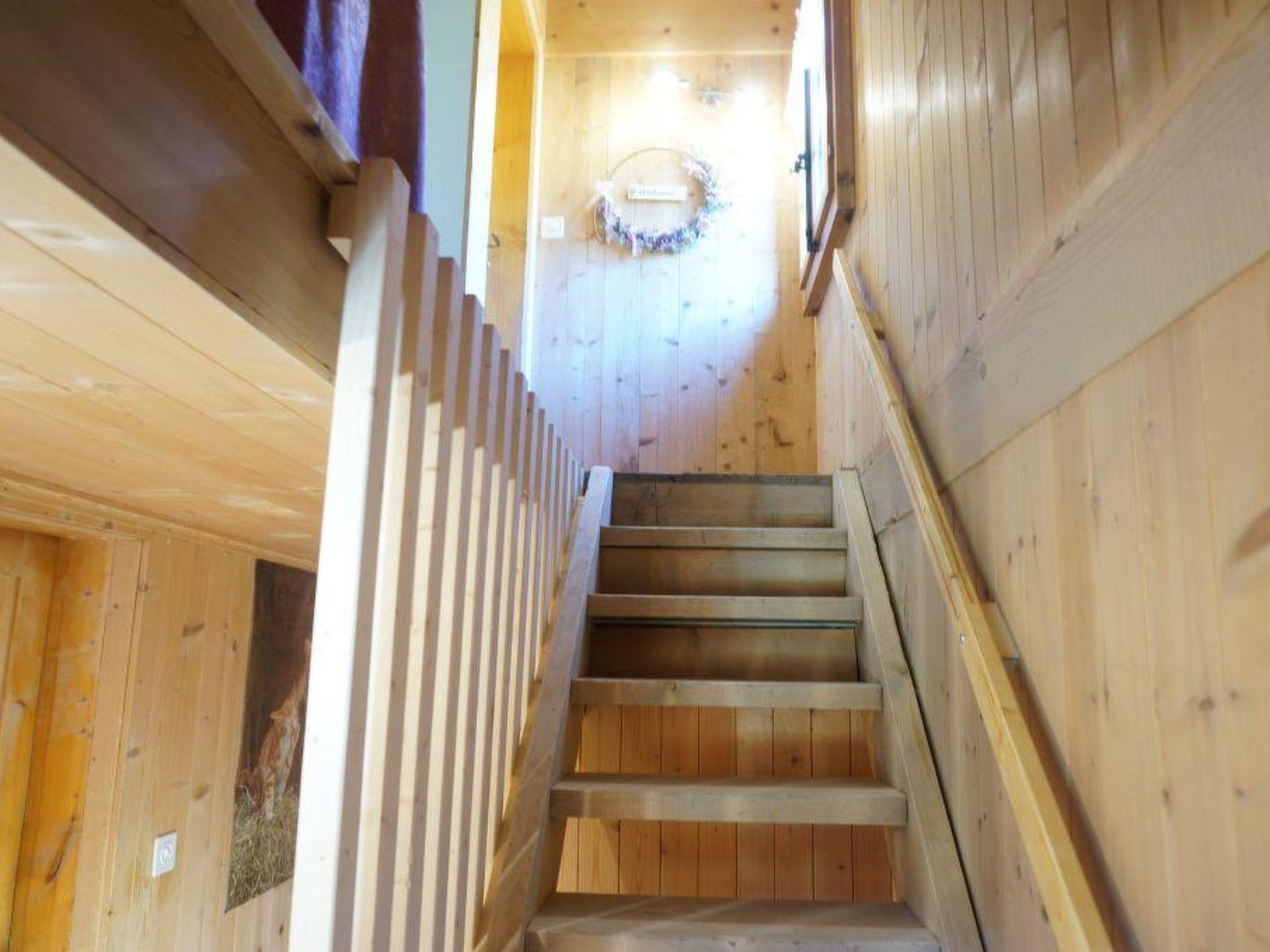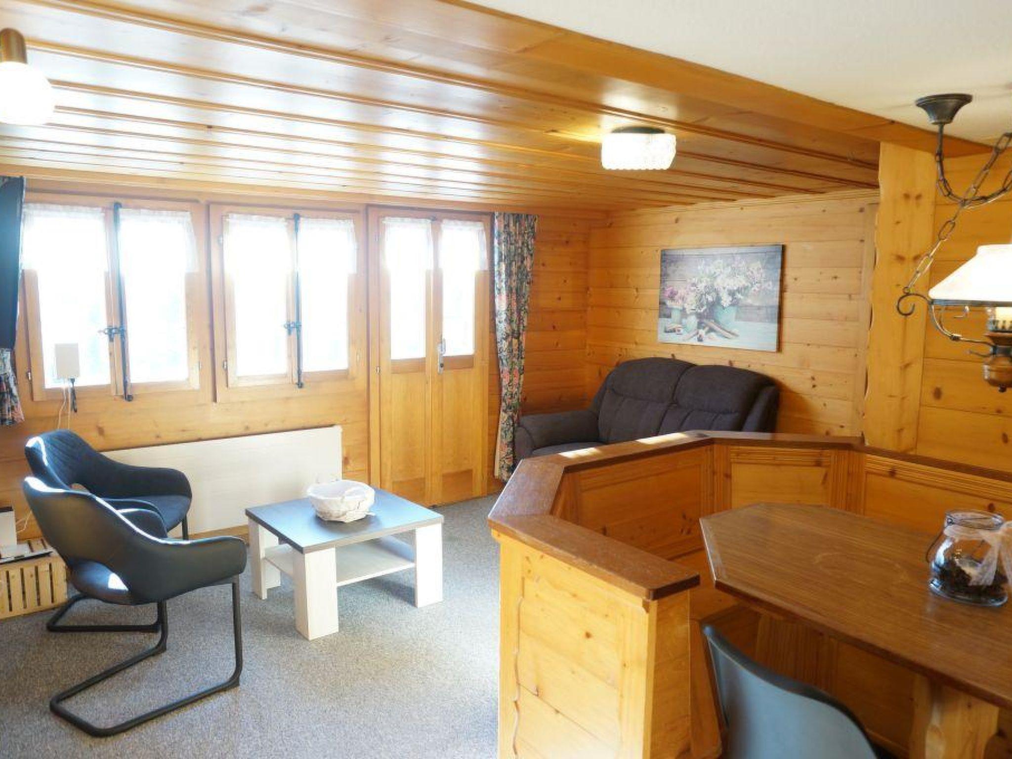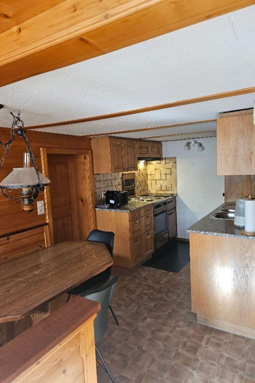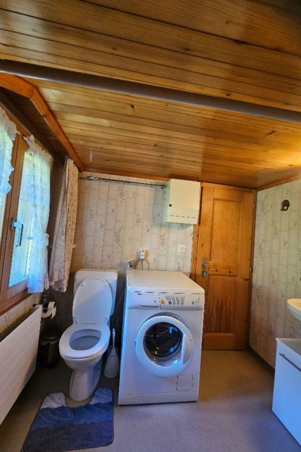 Living-/dining room with kitchen (among other things furnished with wood stove, hob with 4 hotplates, oven, refrigerator with deep-freeze compartment, dishwasher, coffee machine with capsules (Nespresso) as well as a fondue and raclette set), dining table with 4 chairs, cosy sitting area with TV/radio and access to the balcony. 1 bathroom with a sloping ceiling, bathtub/toilet and washing machine. 1 bedroom with 1 grand-lit (160x200cm), big cupboard. 1 room with 2 separate beds (2x90x200cm) and wardrobe. WiFi. The room height is between 1.88m to 1.95m.