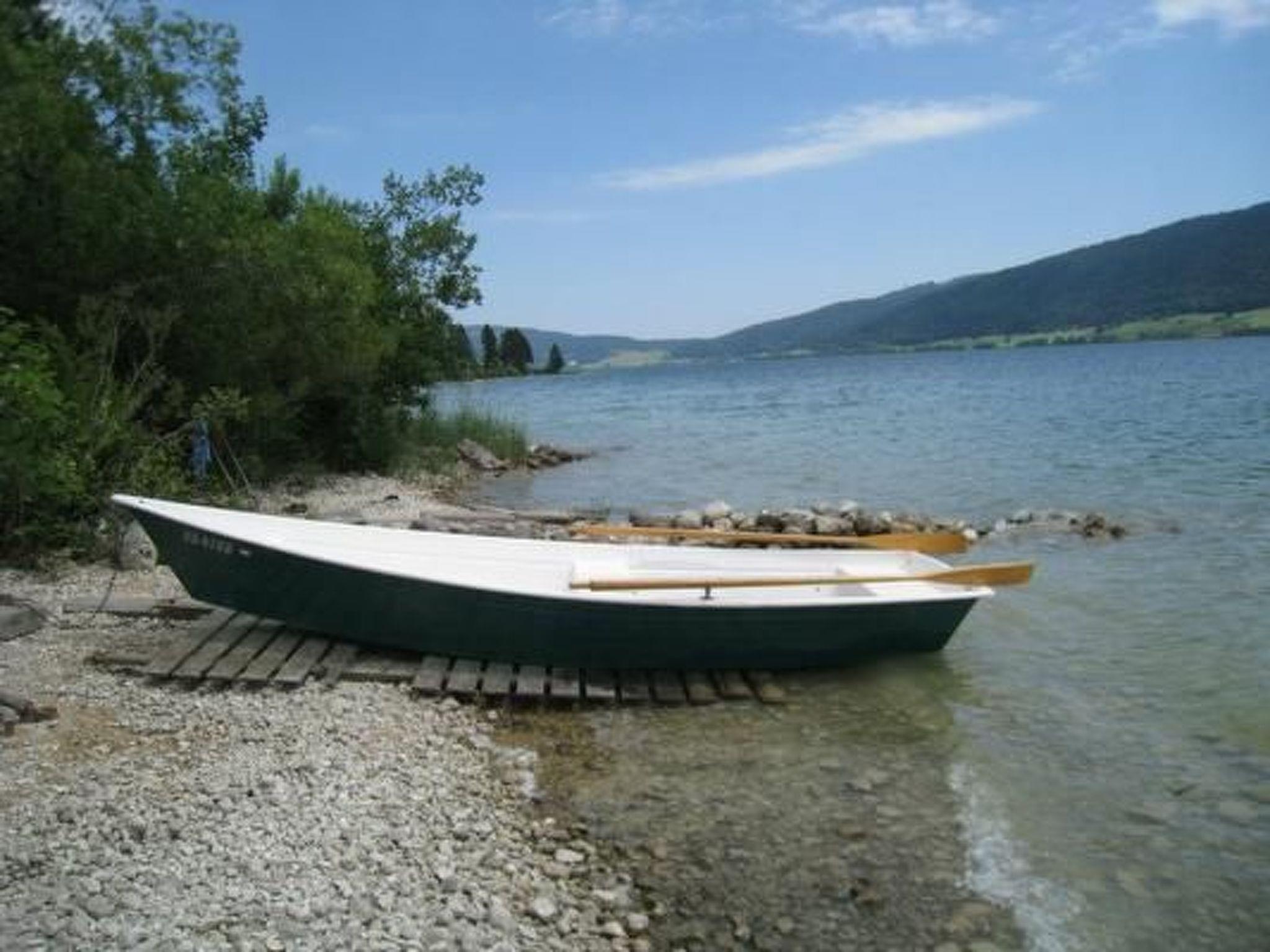 The chalet is 10m from the lake and its small pebble beach. A rowing boat is available for use on the lake.