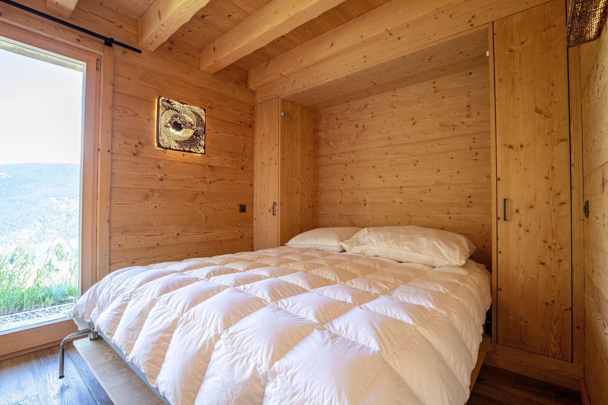 Fly till denna lyxiga 4-stjärniga chalet, inbäddad i den fridfulla skönheten i Les Masses, Schweiz. Perfekt för upp till 4 gäster, denna 80 m² stora stuga erbjuder den perfekta blandningen av modern design och naturliga omgivningar. Det fullt utrustade köket har ett kylskåp, ångugn, induktionshällar, Nespresso-maskin och mer, perfekt för att laga mysiga måltider. Vardagsrummet är ljust och inbjudande, med en modern spis, Bluetooth-högtalare och ett matbord, vilket skapar en idealisk plats för avkoppling. Stugan har två rymliga dubbelrum, ett med badkar på rummet, en skjutdörr till toaletten och handfatet, och det andra med en hopfällbar madrass och ett litet skrivbord. Njut av det eleganta italienska duschrummet med toalett och handfat. Utanför erbjuder stugan en liten terrass med trädgårdsmöbler och en balkong med fantastisk utsikt över bergen. Med enkel tillgång till två parkeringsplatser garanterar stugan din bekvämlighet under hela din vistelse. Denna stuga ligger bara 5 minuter från skidbackarna och erbjuder fantastisk utsikt över bergen Dent-Blanche och Matterhorn. Linbanan ligger bara 1,4 km bort, med butiker och fritidsaktiviteter i närheten. Under din vistelse kan du dra nytta av exklusiva rabatter, inklusive upp till 50 % rabatt på uthyrning av utrustning. Valfria tjänster som gourmetkorgar och sängkläder kan ordnas för att säkerställa en oförglömlig upplevelse.