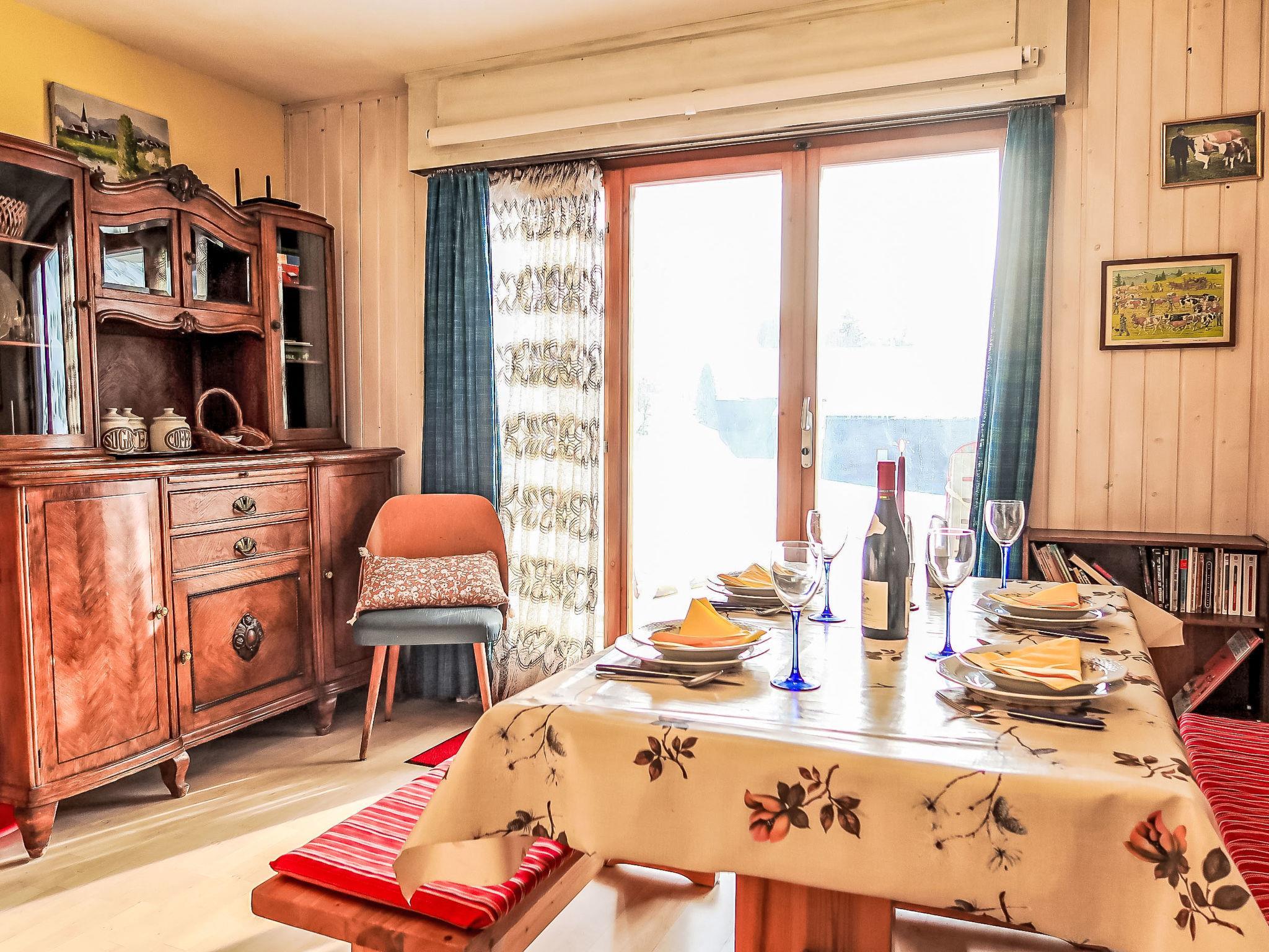 "Les Bluets", 1-room apartment 30 m2. Object suitable for 2 adults + 2 children. Partly renovated in 2025, cosy furnishings: living room with 1 pull-out bed (2 pers. 2 x 90 cm, length 190 cm). Exit to the patio. 1 open small room with sliding door with 2 beds (90 cm, length 190 cm). Open kitchen (dishwasher, 4 induction hot plates, toaster, kettle, electric coffee machine, Capsules for coffee machine (Nespresso), fondue Set (cheese)). Bath/WC. Electric heating. Terrace. Terrace furniture. Beautiful view of the mountains, the ski run and the countryside. Facilities: Internet (WiFi, free). Parking at the house. Please note: non-smokers only.