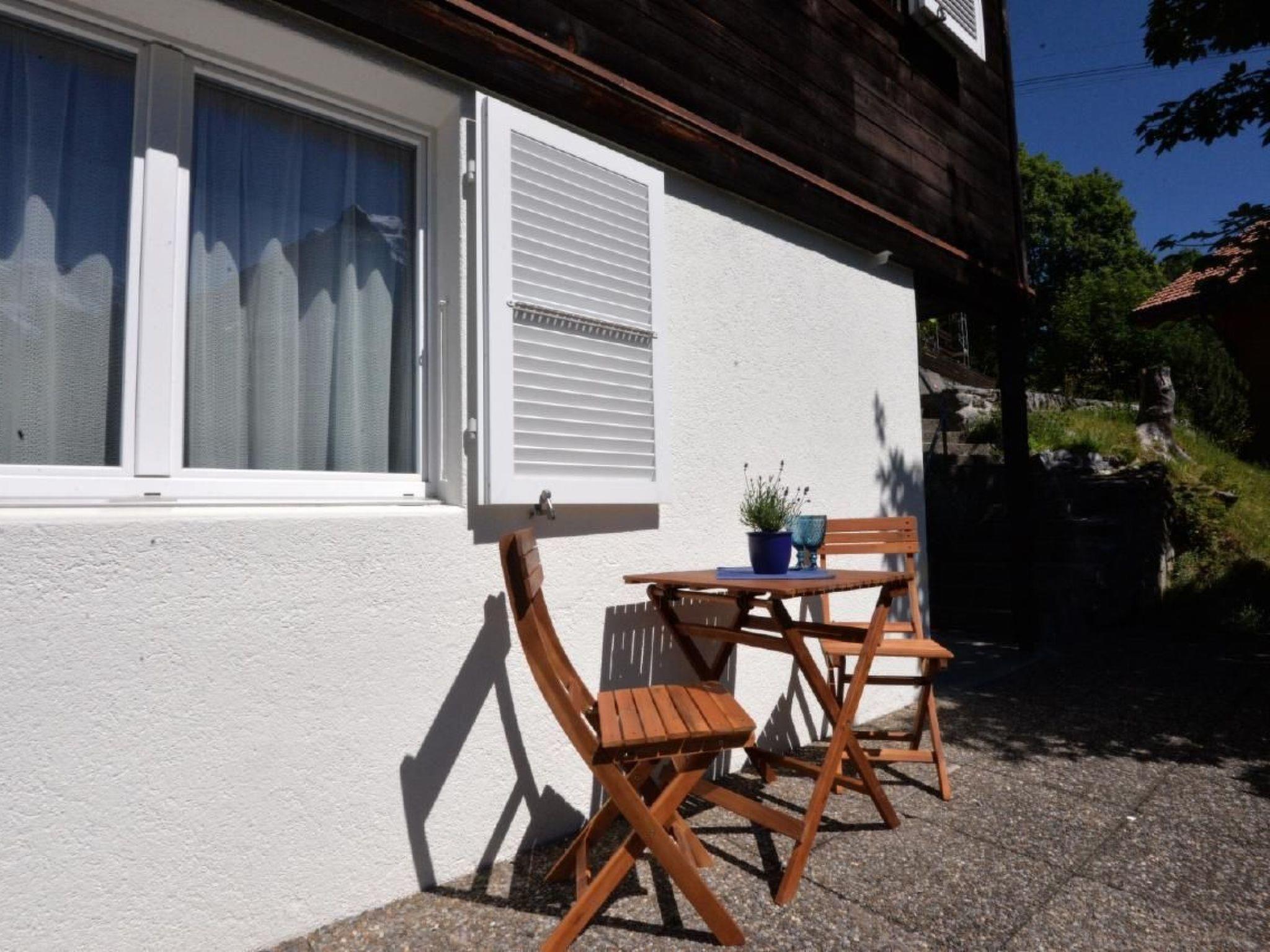 The spacious studio for 2 persons with private entrance is located in the basement of the 4-family house. The large window in the sleeping area offers a view of the mountain panorama. The studio is equipped with a fitted kitchen, dining table with corner bench for at least 4 people and a bathroom with shower, WC and bathtub. The sleeping area is separated from the living area by a curtain. An espresso coffee machine and a kettle are available for a relaxed breakfast. We are happy to provide a fondue or raclette set on request. For entertainment there is a TV and super-fast Wifi free of charge. Enjoy the breathtaking view from the private terrace in front of the studio or on the communal terrace in front of the house. Clean and well-groomed pets are welcome with prior notice. All flats in Chalet Böbs are non-smoking.