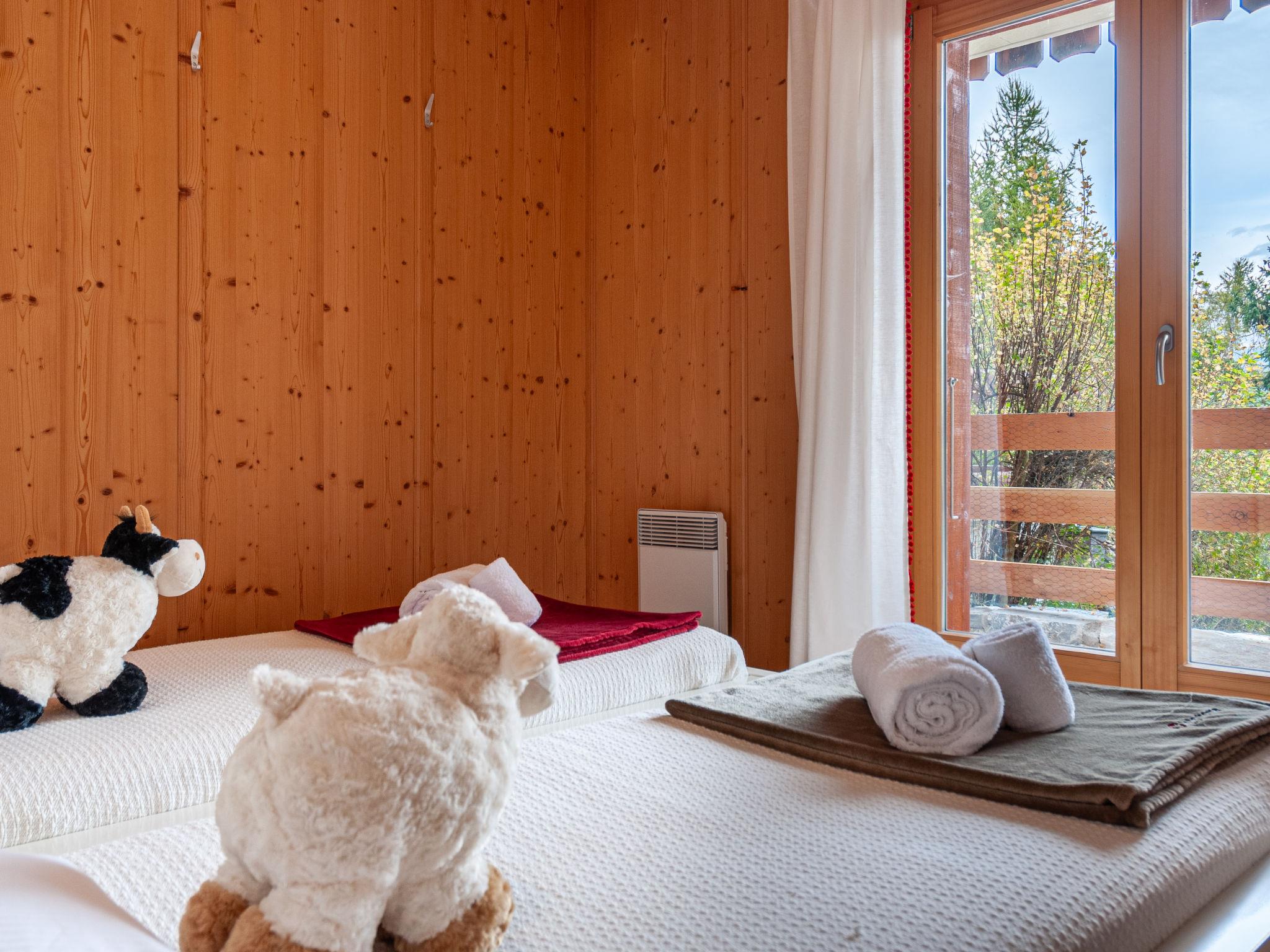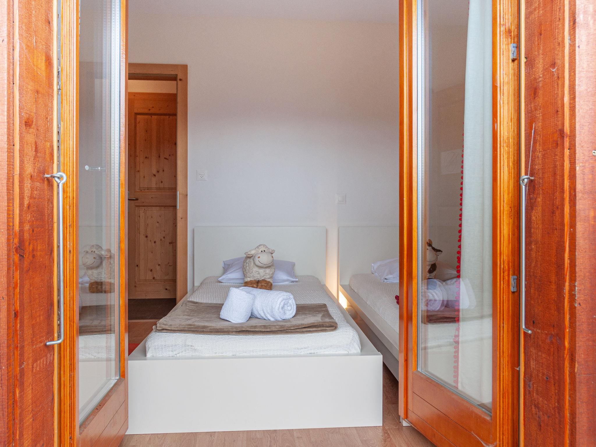 "Sneachta", 5-room chalet 115 m2 on 3 levels. Object suitable for 4 adults + 4 children. Comfortable and cosy furnishings: small entrance hall. Living/dining room with open-hearth fireplace, cable TV and DVD. Exit to the terrace, north facing position. Small, open kitchen (oven, dishwasher, 4 ceramic glass hob hotplates, toaster, kettle, microwave, freezer, electric coffee machine, Capsules for coffee machine (Nespresso) extra, raclette grill, fondue Set (cheese)). Shower/WC. Electric heating, underfloor heating. On the lower ground floor: 2 rooms, each room with 1 french bed (160 cm, length 200 cm). 1 room with 2 beds (90 cm, length 200 cm). Bath/WC. Upper floor: 1 room with 1 double bed (160 cm, length 200 cm), bath/shower/WC. Large terrace, north facing position and, east facing position. Terrace furniture, barbecue. Marvellous panoramic view of the mountains. Facilities: washing machine, dryer, children's high chair. Internet (WiFi, free). Parking (2 cars). Please note: suitable for families. Non-smoking house. Maximum 1 pet/ dog allowed.
