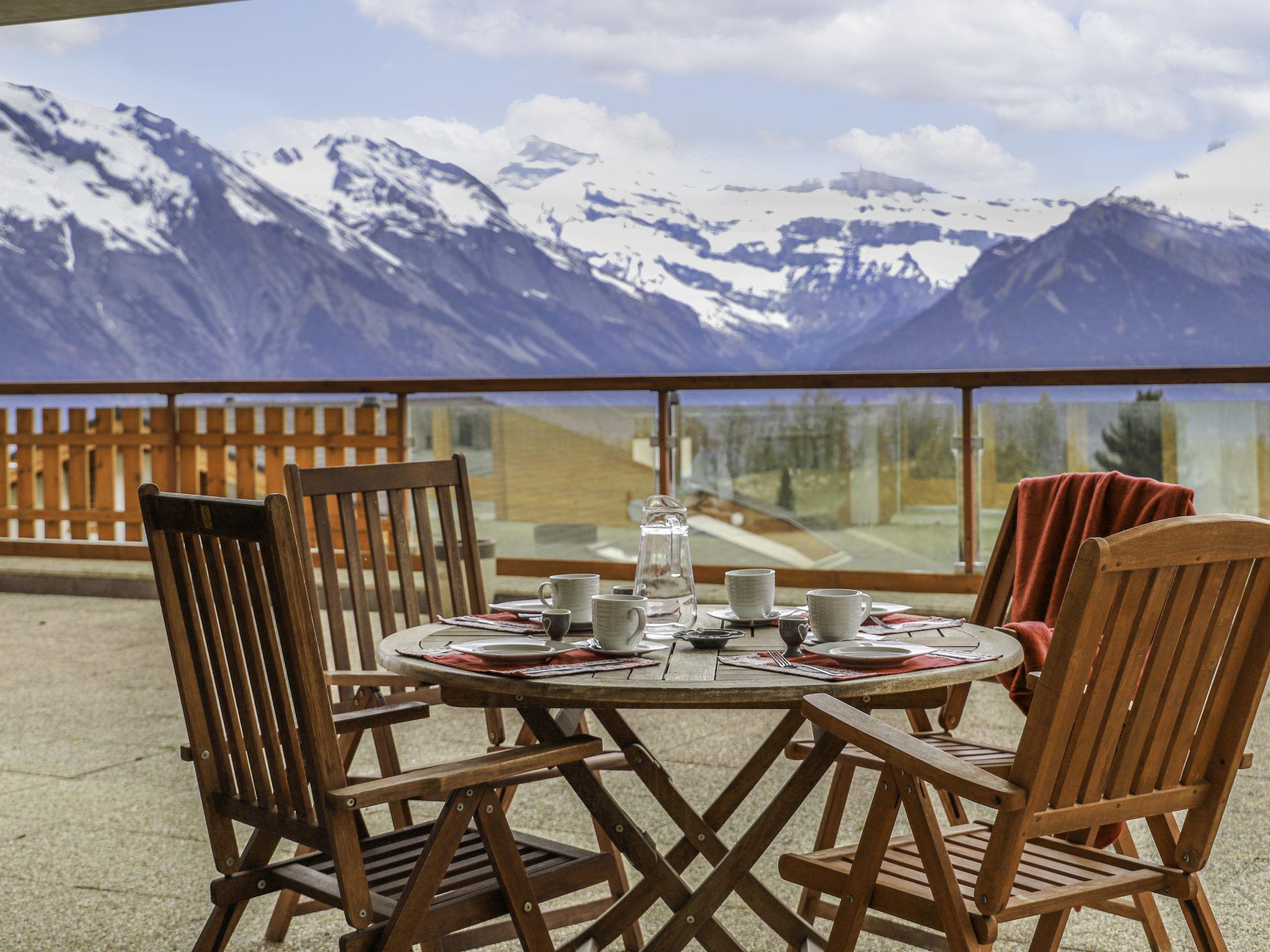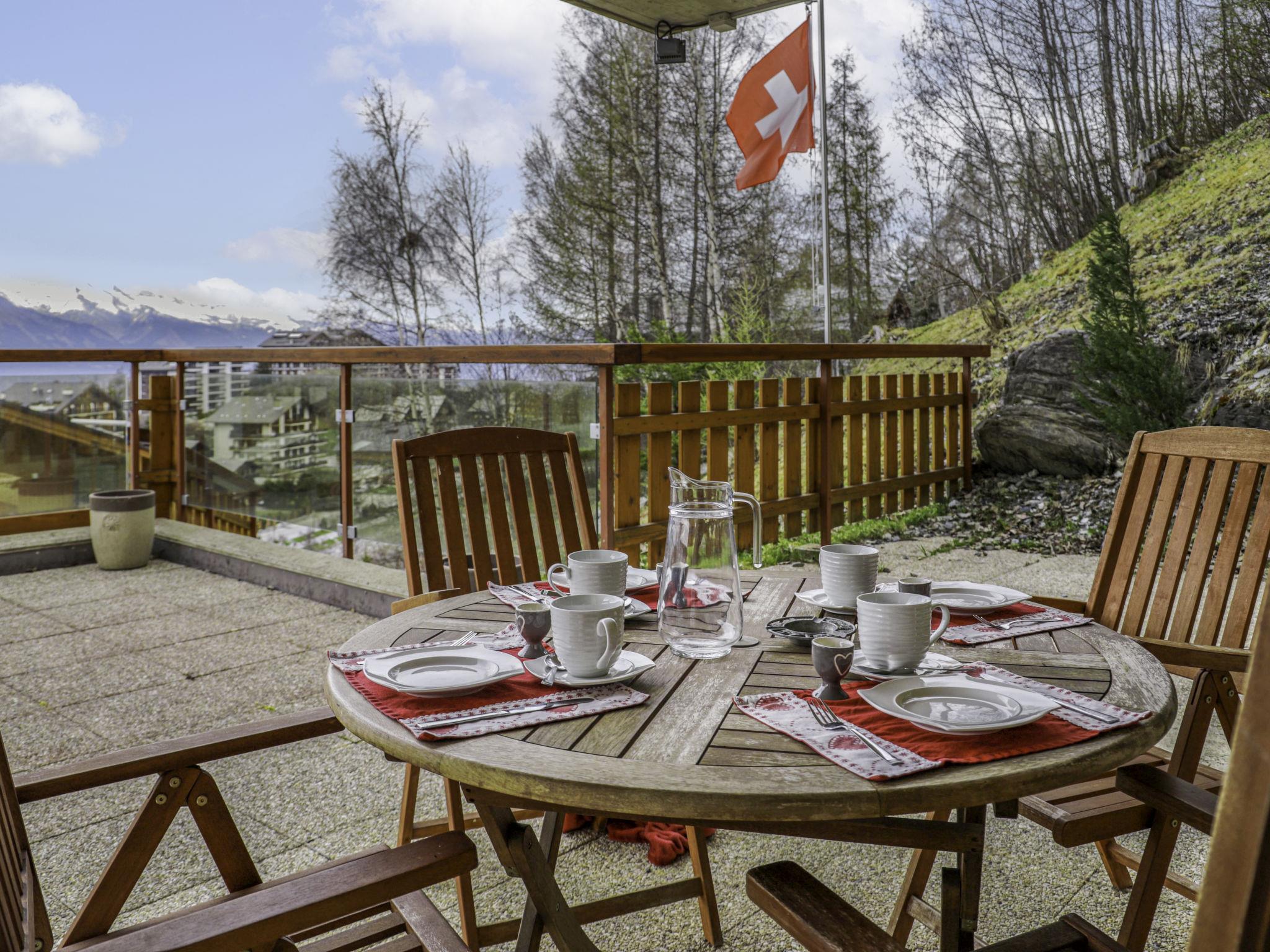 "Domaine des Reines A2", 3-room apartment 65 m2 on 1st floor. Spacious, comfortable and tasteful furnishings: living/dining room with open-hearth fireplace, cable TV and DVD. Exit to the terrace. 1 room with 1 french bed (180 cm, length 200 cm), shower/WC. Exit to the terrace. 1 room with 2 beds (90 cm, length 190 cm). Open kitchen (oven, dishwasher, 4 ceramic glass hob hotplates, toaster, kettle, microwave, electric coffee machine, Capsules for coffee machine (Nespresso) extra, raclette grill, fondue Set (cheese)). Bath/WC. Balcony, north facing position and, east facing position. Balcony furniture, barbecue. Beautiful view of the mountains. Facilities: hair dryer. Internet (WiFi, free). Parking (roofed) at 100 m, height 210 cm, width 250 cm. Please note: non-smokers only.
