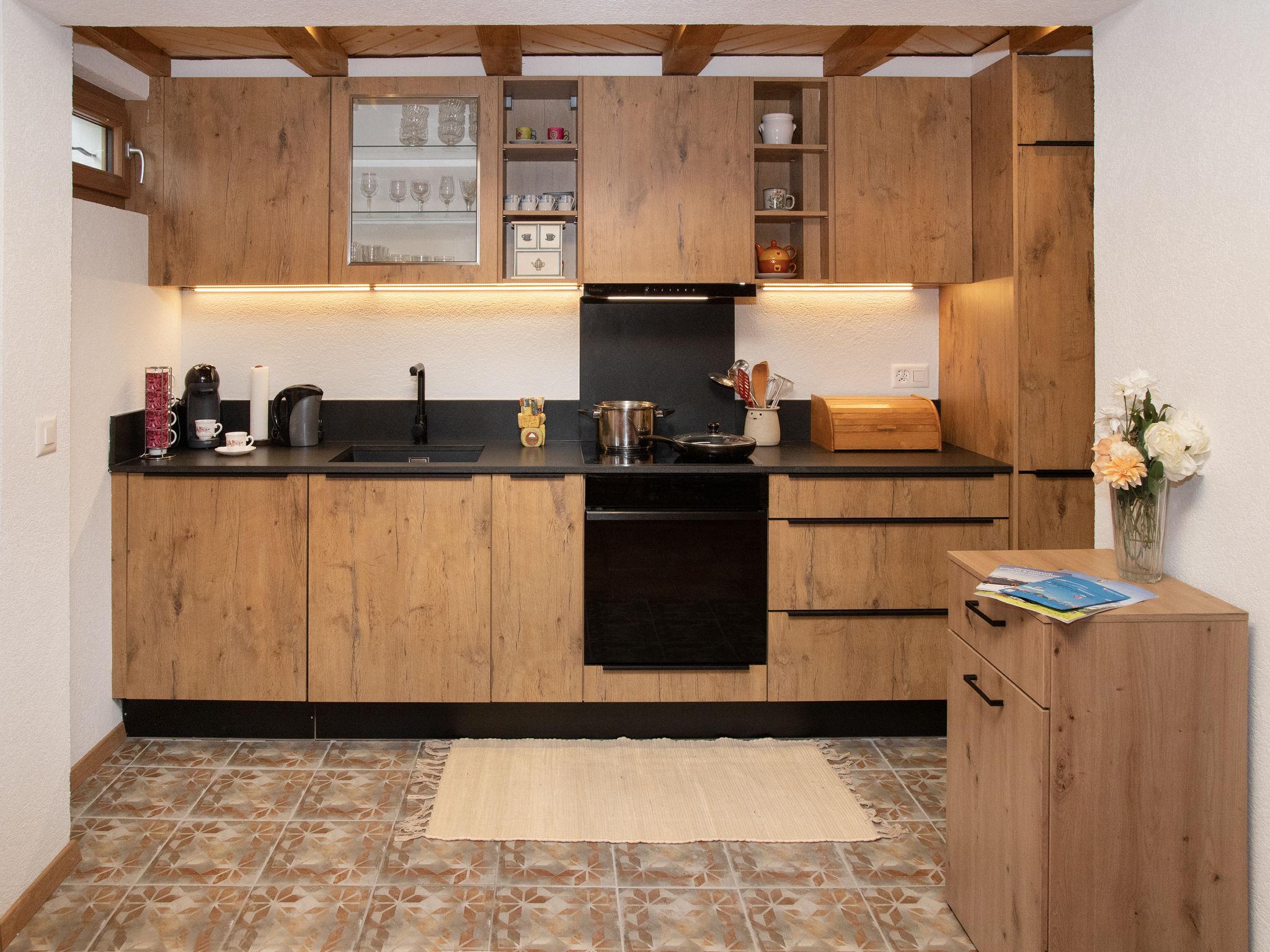 "Mélèze 1967", 5-room chalet 100 m2 on 2 levels, north-east facing position. Object suitable for 2 adults + 3 children. Beautiful and rustic furnishings: large dining room with dining table. Living room with satellite TV and wood-burning stove. Open kitchen (oven, dishwasher, 4 ceramic glass hob hotplates, toaster, kettle, electric coffee machine, Capsules for coffee machine (Dolce Gusto) extra, fondue Set (chinoise, cheese)). Bathroom. Electric heating. Upper floor: 1 double bedroom with 1 french bed (160 cm, length 200 cm). Exit to the balcony, north-east facing position. 2 rooms, each room with 1 bed (90 cm, length 190 cm). 1 children's room with sloping ceilings with 2 sleeping facilities. Beautiful view of the mountains. Facilities: washing machine, dryer. Parking (2 cars). Please note: non-smokers only.