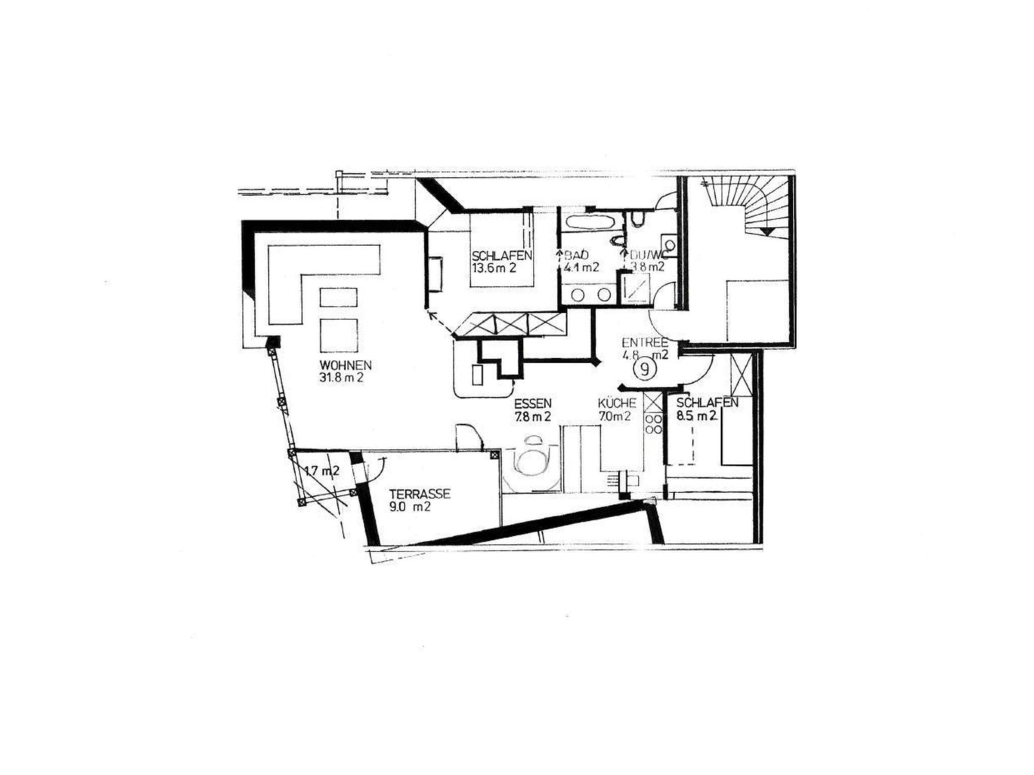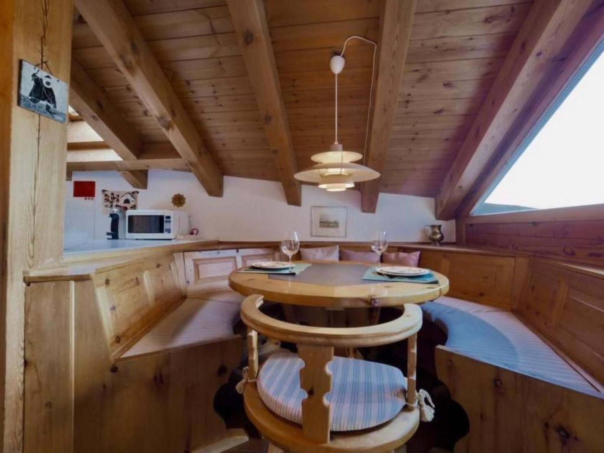 Inside, a spacious, bright and cosy 3 1/2-room penthouse flat awaits you, furnished with great attention to detail. Fine Swiss stone pine furniture and exposed beams lend the flat an inviting, alpine charm. The very well-equipped, open-plan kitchen invites you to spend evenings cooking together, while you can relax in the two bathrooms, which can be separated by a sliding door or used as a single unit. There is also a washing machine in the flat and Wi-Fi to keep you connected.