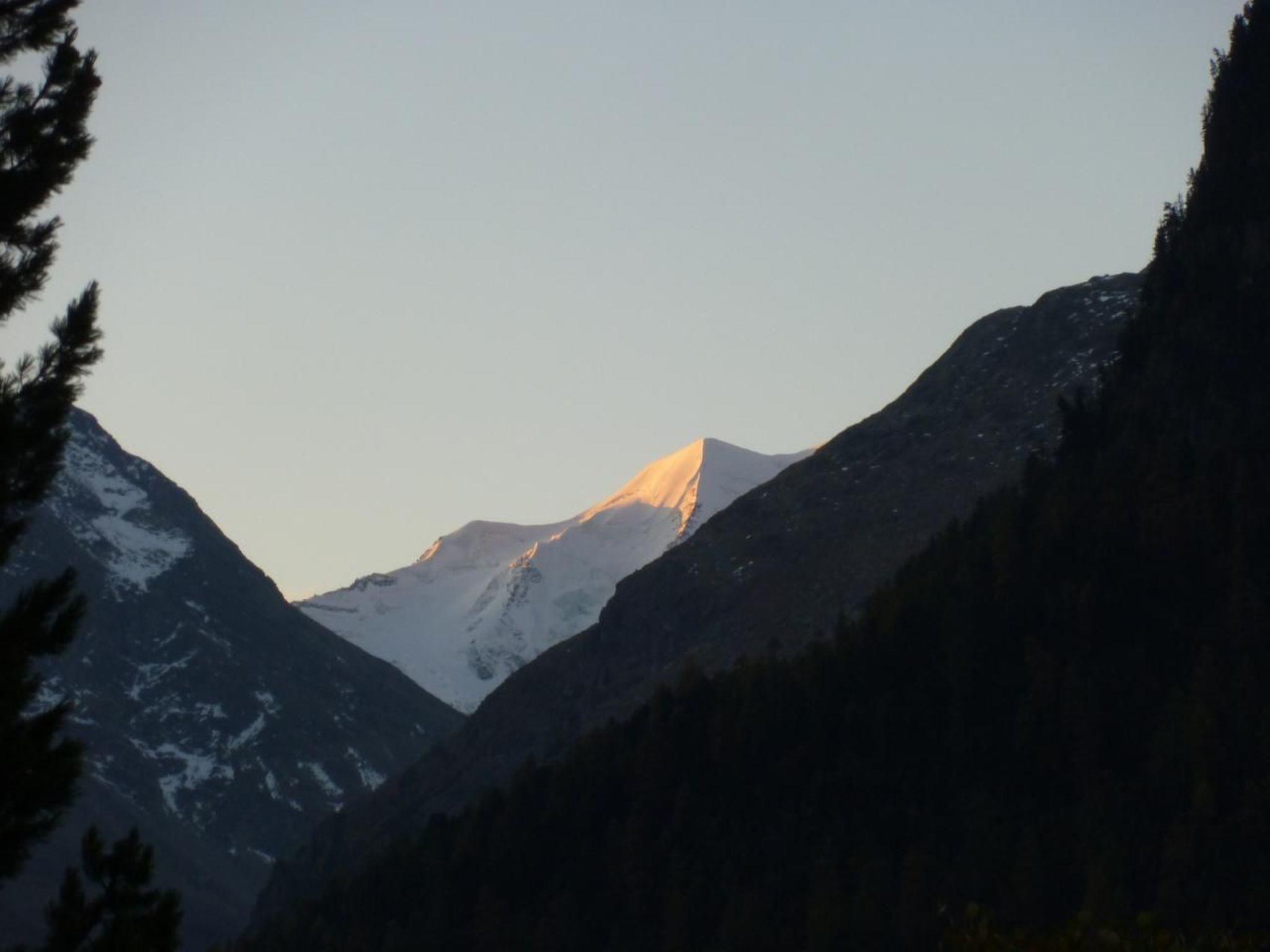 Charming modern studio (38m2) furnished with dignified local materials for quiet, pleasure-oriented individualists (2 persons), sunny all day, quietly located in a newer local MFH with personal flair, on a south-facing slope and yet right in the centre of Pontresina, with a chilled balcony to linger, unobstructed views and far-reaching views into Val Roseg to Piz Chapütschin, bright, spacious living/bedroom with double bed (180x200cm) with 2 separate mattresses, TV, Wlan, open fully equipped kitchen with bar (2 hotplates, oven, fridge), shower/WC modern in fine black slate with shower cubicle, adjoining room/display for all sorts of things separated by a door (for clothes/wardrobe/housekeeping/suitcases etc), no stairs, boot/ski room in the basement accessible by lift, 2' zu Fuss zur Flanier- und Restaurantmeile der Via Maistra und zur Bushaltestelle, 12' to the station, private parking space in front of the house