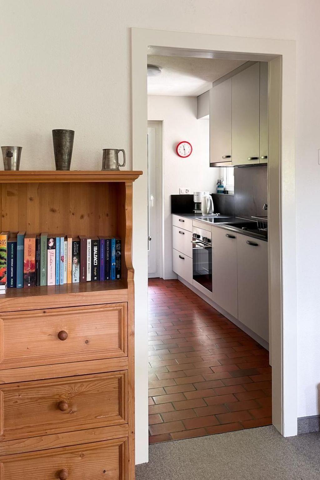 Nice 4,5-room apartment on the 1st floor (105 sm). Sunny and quiet location with a beautiful view, balcony with table and chairs and also one part of glas against wind, big garden, big living-/dining-room with television, Internet and Radio. The new (Nov. 2023) kitchen with ofen, big fridges, dishwasher, Raclett and Cheesefondue, lots of herbs and Tee, coffee and basics like nuddles, rice etc. only to buy if out.Bathroom/WC,shower, bathtub double washbasin. 3 bedrooms, seperte Childrenbed up to 2 years possible. Garage and 1-2 open parkingspaces. Near to the bus stop, tennis courts/ice fields and childrens playground. Optimal starting-point for various sports activities. Peds permetted. To the village and all shops, Coop, Sennerei / alpine dairy, Soprt shops, phamacy and tourist information centre possible to walk in about 5-15 min.