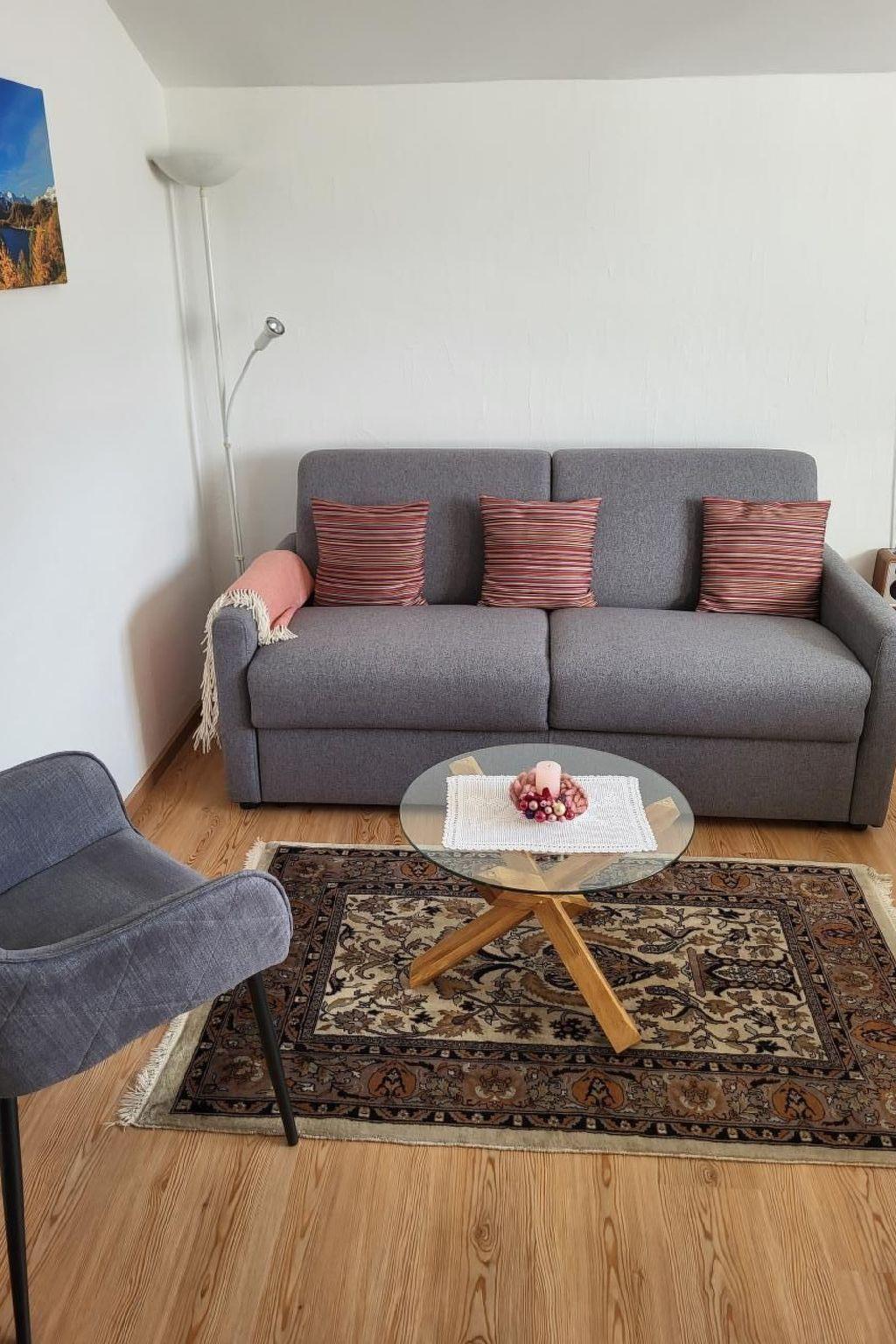 Flat: The bright sunny flat awaits you with a bedroom for 2 persons (baby cot available on request), a living/dining room with cosy sitting area, a pull-out sofa bed (for a 3rd person), dining table, SAT-TV, free WLAN and DAB radio.