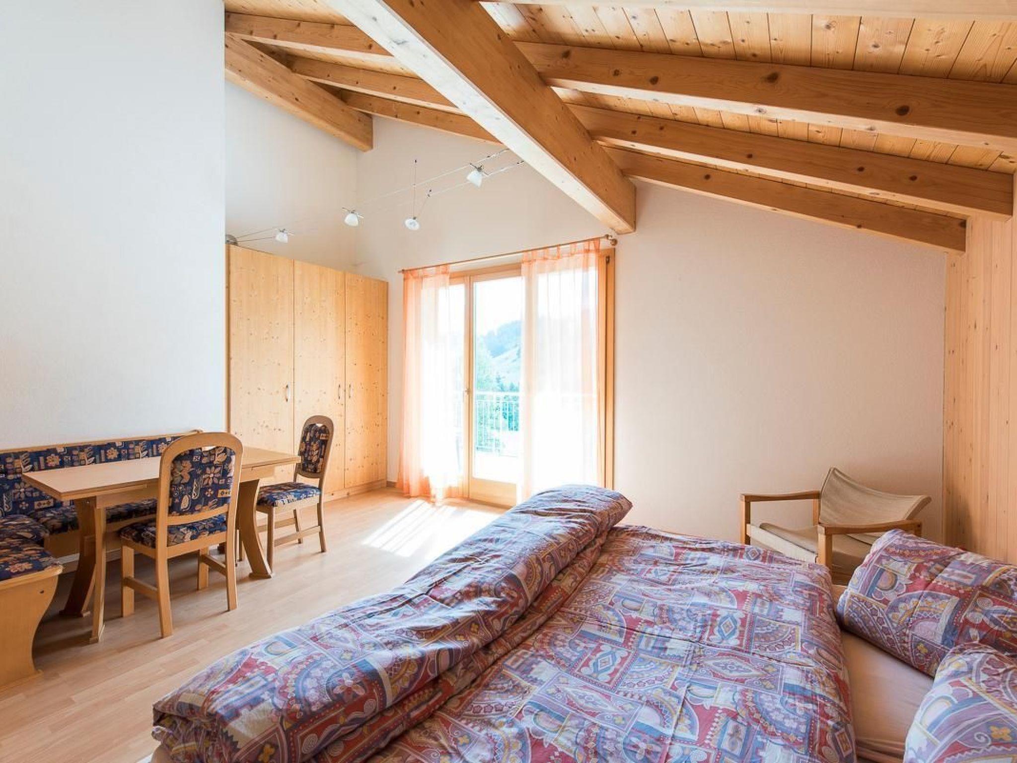 On request, either a separate double room for 2 people or a large room for up to 6 people can be rented with a double bed, cot and gallery (4 mattresses). Both rooms are on the upper floor and have a shared WC with shower, WC and washbasin. If both rooms are available, a total of 12 people could be accommodated together with the Stöckli flat.