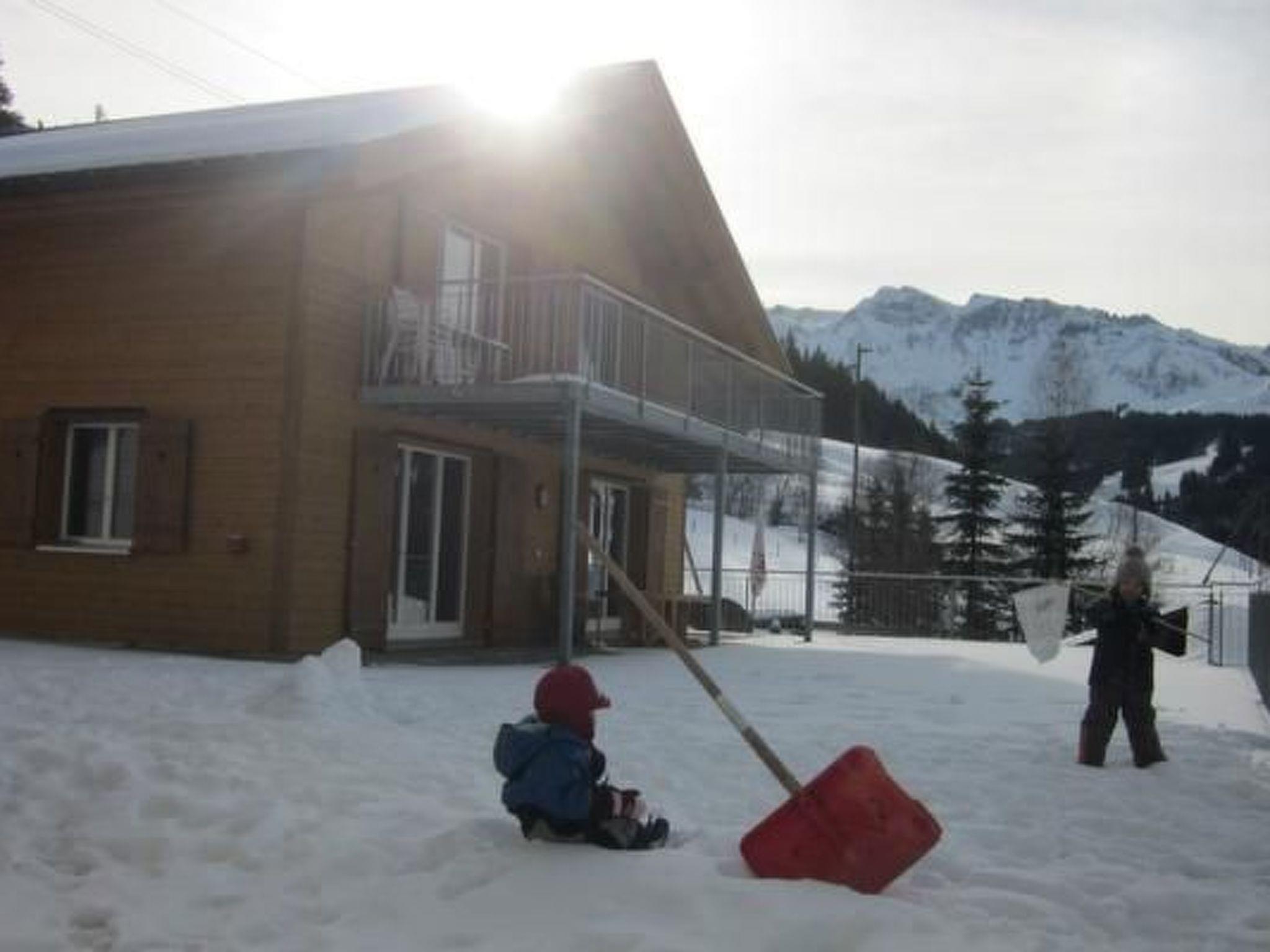 The Stöckli holiday flat can accommodate up to 4 people, is wheelchair accessible and offers plenty of space for family holidays. Everything is on the ground floor, the entrance area/cloakroom, the kitchen/living room, the bedroom and the bathroom. The kitchen is equipped with a ceramic hob, fridge, oven, microwave, dishwasher and capsule coffee machine. The large oak table seats 6 people. There is also a TV and a large sofa. In the room next door is the double bed and the bunk bed. The bathroom is directly accessible. Here we offer a bathtub and a large shower. The beautiful garden seating area right next to the playground offers a wonderful view of the mountains.