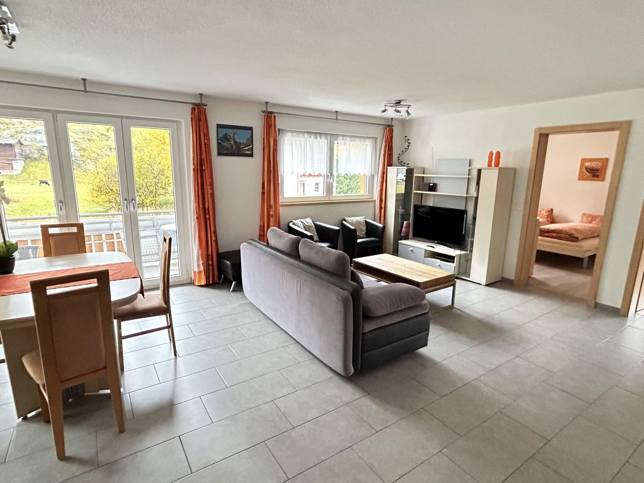 3-room apartment on the first floor of the Alpenstern holiday home. Large and bright living and dining area and modern kitchen with dishwasher, electric kettle and coffee maker. Living room with satellite TV, hi-fi system and DSL Internet connection. Two large and bright double rooms, bathroom with modern shower, WC and washstand. Large west-facing balcony