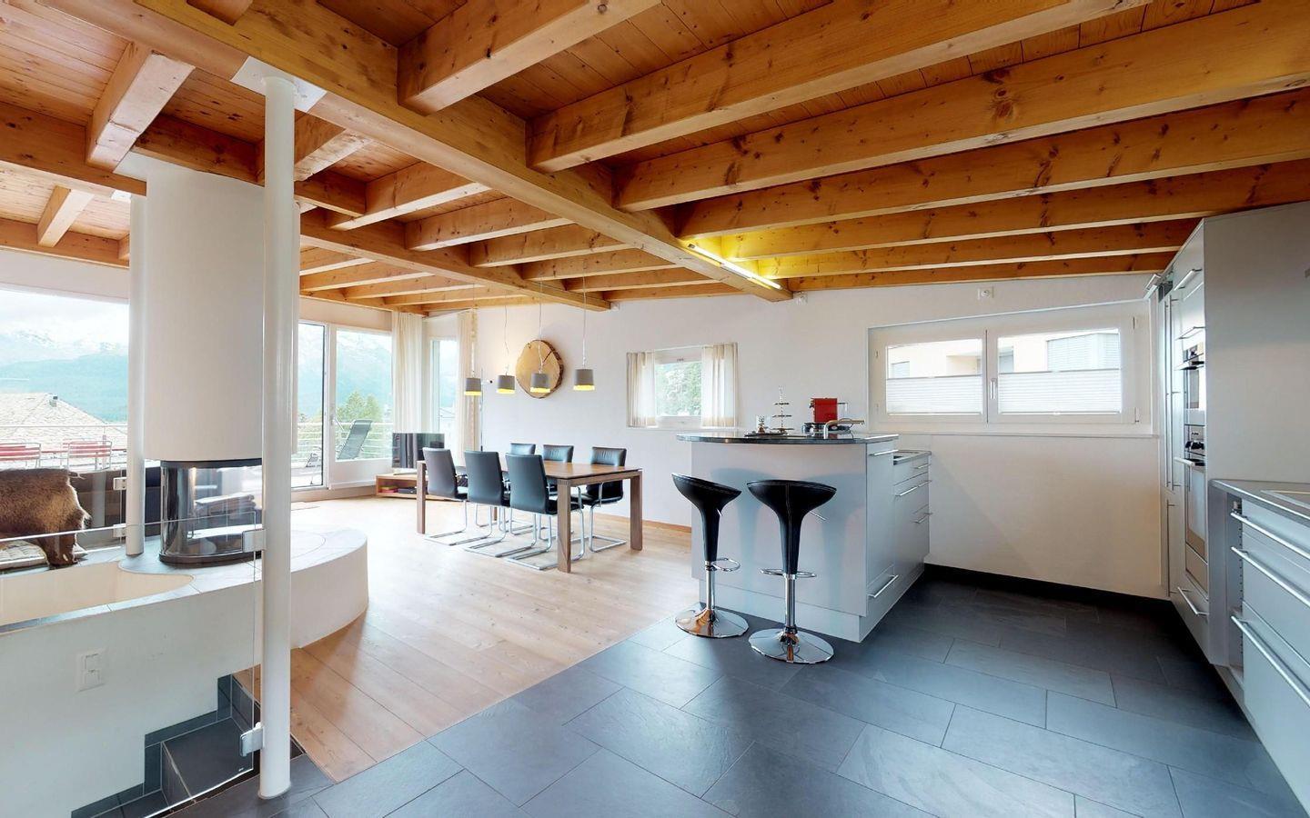 Luxuriöse, gepflegte 5.5. Zimmer-Penthousewohnung auf zwei Stockwerken mit traumhafter Aussicht auf die eindrückliche Bergwelt des Berninamassives bis zum Piz Margna. Einkaufsmöglichkeiten sowie Bahnhof erreichen Sie in 5 Gehminuten. Dachgeschoss 1: Eingang zur Wohnung mit Garderobe sowie separates Gäste WC. Grosszügige, eleganter Wohn-/Essbereich mit Kamin und grosser Terrasse. TV Swisscom. Offene, sehr schöne und gut ausgestattete, moderne Küche mit Geschirrspüler, Backofen, Steamer. Untere Ebene: Schlafbereich mit Elternschlafzimmer, Ankleide und direktem Zugang zum Badezimmer/WC mit Doppellavabo, separate Dusche und Badewanne sowie Haartrockner. Weiteres Doppelschlafzimmer und 2 Einzelschlafzimmer mit Badezimmer und Doppellavabo, Dusche/WC und Haartrockner. Tiefgaragenplätze Nr. 43 + 44 sowie Ski- und Veloraum. Wäscheraum ist im Haus vorhanden. Haustiere sind nicht erlaubt.