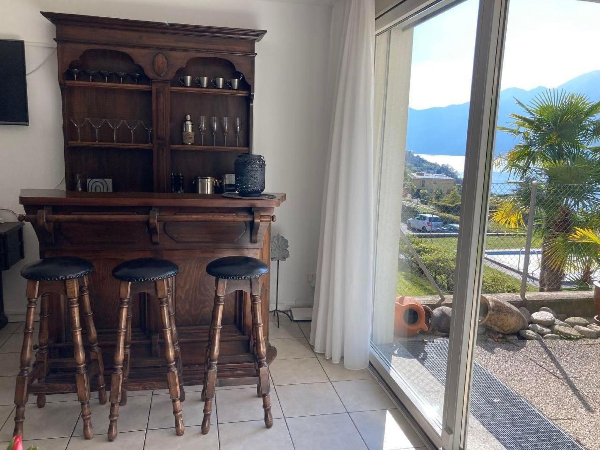 Other living room furnishings (living room1): The living room has a cosy antique English bar with 3 bar stools and a great lake view. Large window fronts open up the view over the private garden across the pool to the lake. This lake side spoils you with the most beautiful sunsets on Lake Maggiore and the living room also has a large corner sofa with lake view, a flat screen TV, a CD player and a radio. The crackling fireplace will delight you and provide you with unforgettable evenings.