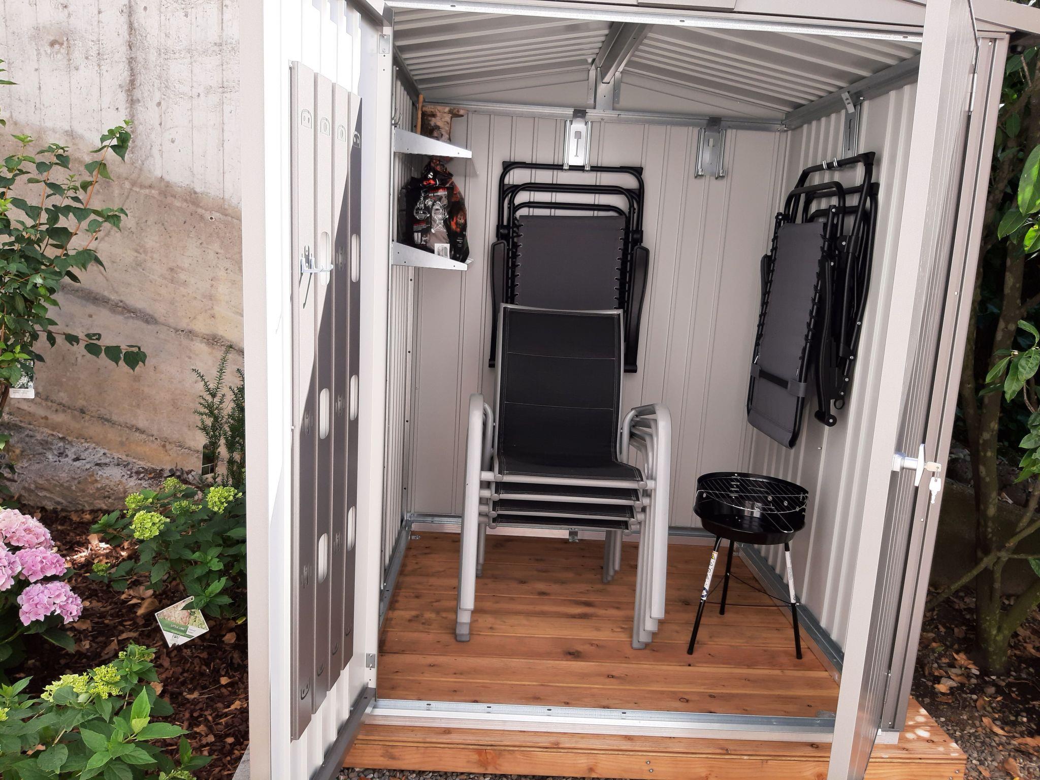 - Garden seating area with garden furniture (2 deckchairs, 4 chairs