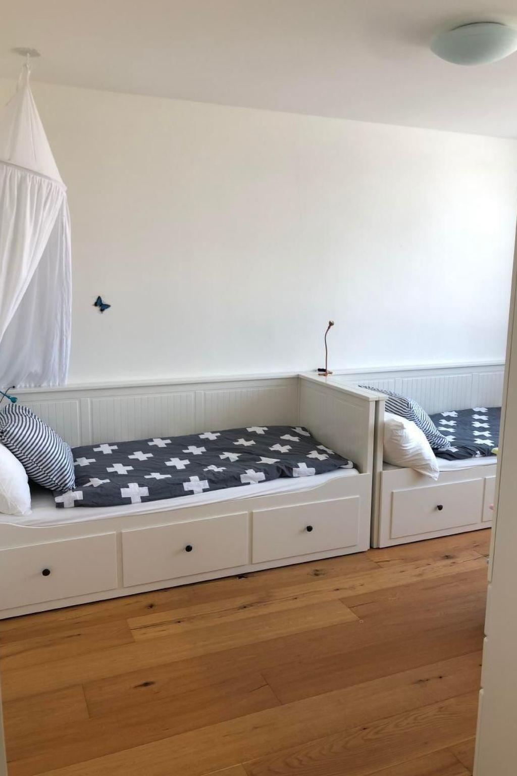 The penthouse is suitable for 6 adults and 3 children. One bedroom has three single beds, which are suitable only for children.