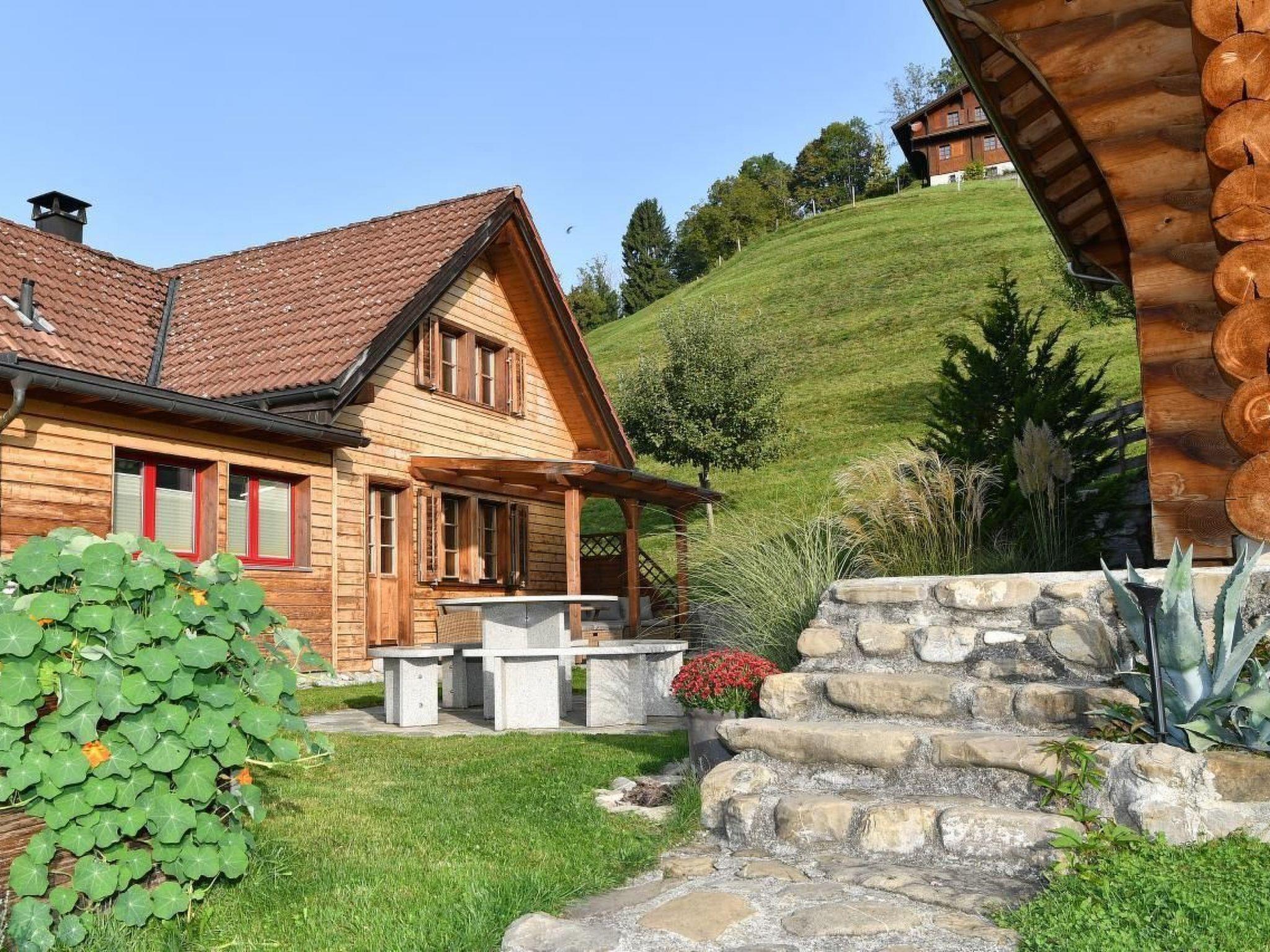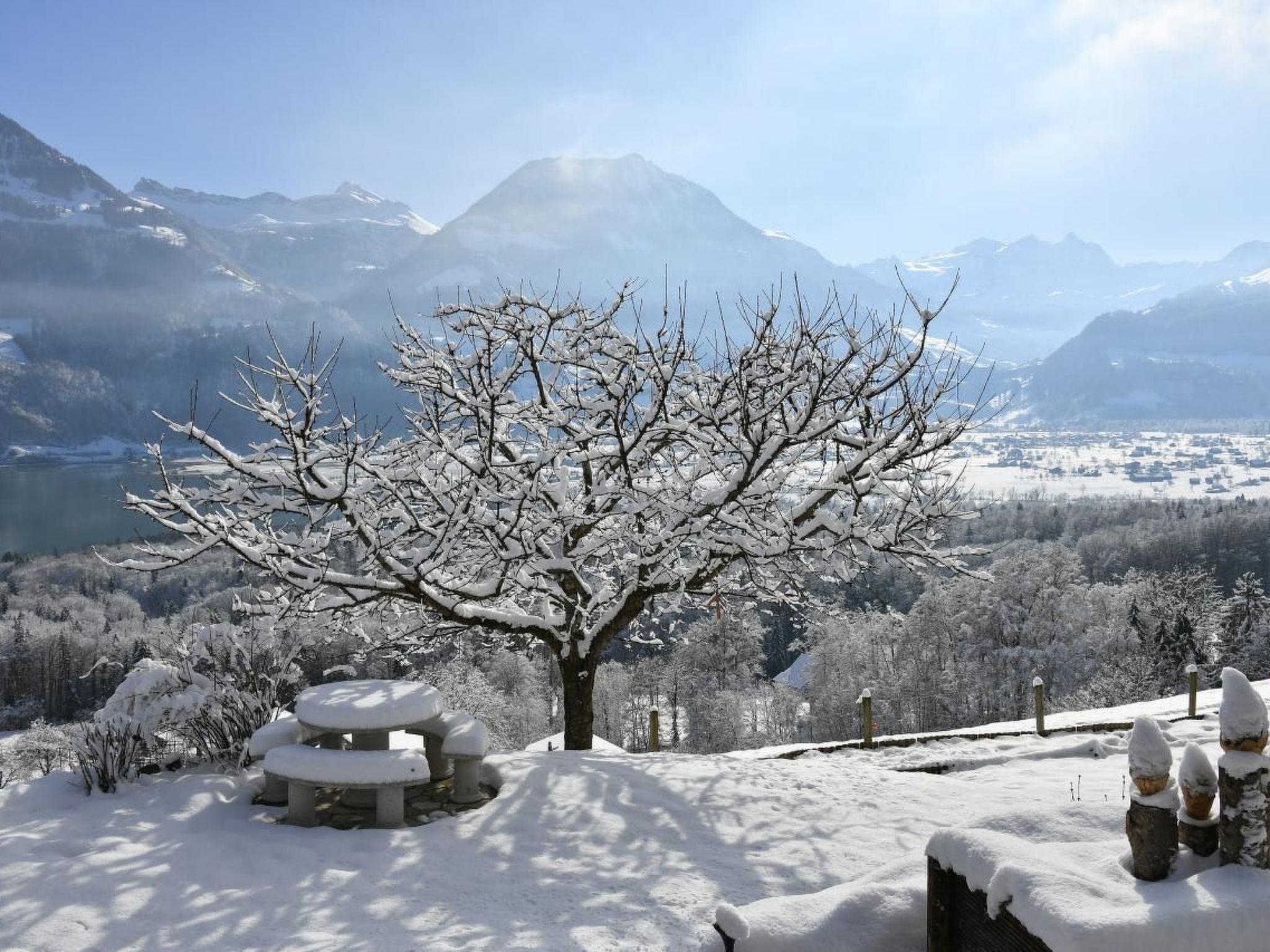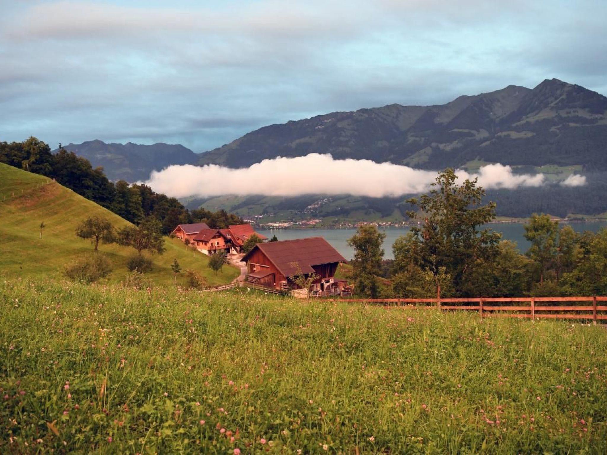 Discover our quietly situated holiday home in the middle of our Lamahof, which promises you a unique time-out in harmony with nature. Enjoy the rustic cosiness of our newly renovated wooden house, equipped with a breathtaking balcony and garden seating area, from where you can enjoy the picturesque view of Lake Sarnen and the surrounding mountain panorama to the full. The house is the ideal starting point for your adventures in the mountains of Central Switzerland and promises unforgettable moments in idyllic surroundings.