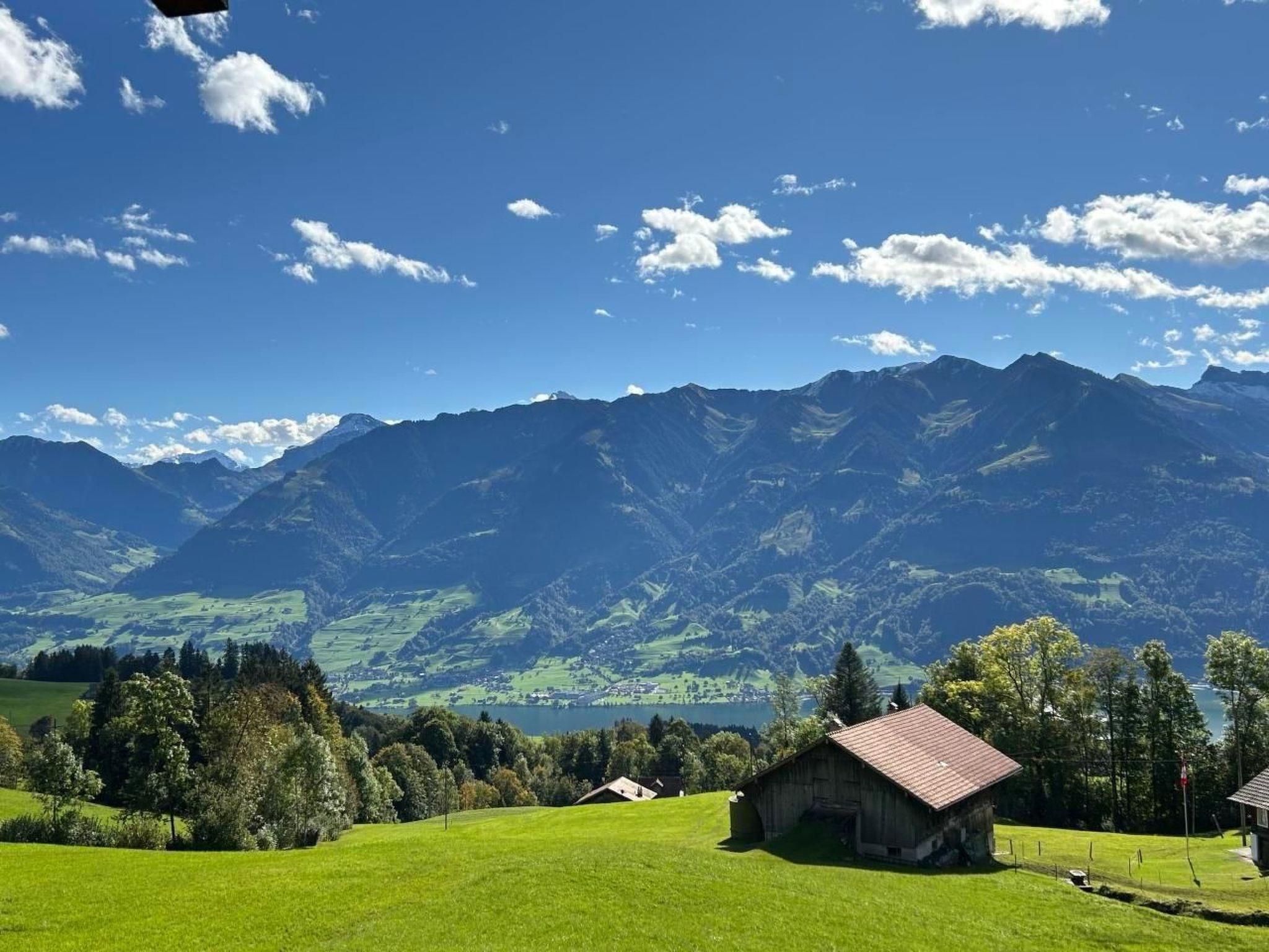 Sit on the marvellous terrace and enjoy the view of the mountains and Lake Sarnen. The terrace is furnished with a garden table and chairs.