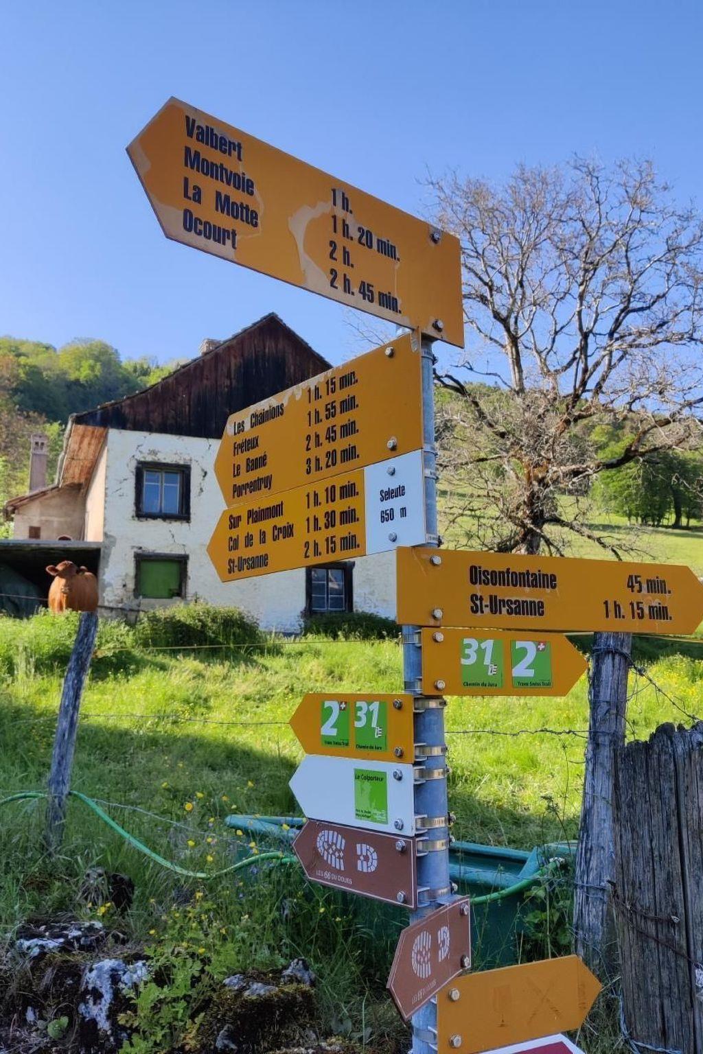 Spend your next holiday in Seleute, an idyllic village in the Clos du Doubs, 6 km from the medieval town of St-Ursanne! A charming, spacious house in a rural setting at the foot of the Jura mountains is ready to welcome you, whether as a family, group or simply with friends. As a family, group or simply with friends. With Wifi Internet access. Discover also: - A public barbecue area outside the village; - A small, cosy restaurant where you can eat and drink can enjoy drinks from the region; - Numerous hiking and mountain biking trails; - A human sundial. Chalet Ma Petite Fontaine consists of two flats Edelweiss (for 17 persons reserved under object number 883 180) and Gentiane (for 8 persons reserved under object number 883 162). This old village restaurant has been renovated and now offers ideal opportunities for groups, families, schools or other institutions. The house has 2 terraces, swings and access to an attic for adventurers who want to sleep in the hay. The Edelweiss flat of 150 m2 is located on the ground and first floor. On the ground floor there is a large living room with a fireplace, bar and TV with a capacity of 25 people, ideal for meetings or relaxation, a fully equipped professional kitchen, 1 dormitory with 10 beds (including 1 sofa bed), 2 separate toilets, 1 double shower, a washing machine/dryer room. On the first floor there is a bedroom with a double bed, and two adjoining bedrooms with a bunk bed and 3 beds. The Gentiane flat of 100 m2 is located on the first floor. Two bedrooms with 3 beds, a large living room (with 1 sofa bed), a bathroom with WC, shower, washing machine and dryer. The two units can communicate from the inside.
